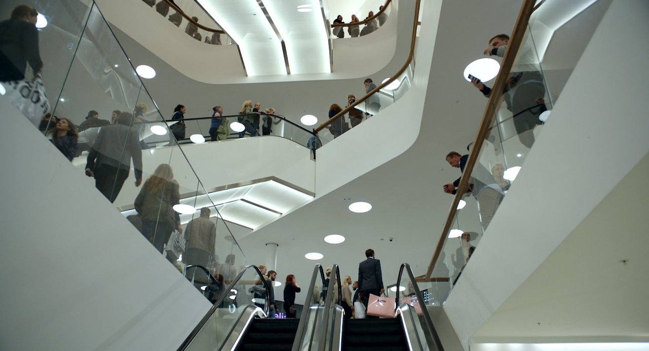 방문객에게 미술관에서 사진을 절대로 찍으면 안 된다고 하면서 방문객이 없는 밤에 미친 듯이 어지럽게 날뛰면서 노는 미술관 관계자들의 장면은 남에게는 엄격하고 자신에게 관대한 모순적인 태도를 적나라하게 묘사한다. 더 나아가, 누군가 위협을 당해도 그저 무시하고 지나치는 사람들로 널린 출근길 장면과 행위 예술가가 파티장을 초토화시키는 장면은 위협하는 이기주의와 방관자로 가득 찬 현대사회를 스스럼없이 보여준다. 특히, 후자의 장면은 도망가느라 바쁜 사람, 눈을 피하고 침묵하는 사람, 그리고 뒤늦게서야 나서기는 하지만 폭력에 폭력으로 대항하는 사람을 잇달아 보여줌으로써 전시회를 보는 듯한 느낌을 자아낸다. 여기에 덧붙여, 거지가 도움을 요청할 때는 단호하게 거절하더니 막상 본인이 급하게 도움이 필요해 거지에게 부탁하는 크리스티안의 모습은 힘없는 자를 도구로 여기는 가진 자의 이기심을 현시한다.