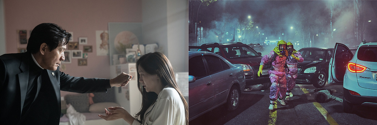 이는 두 작품에 대한 평가가 대조되는 이유이기도 하다. <사자>는 격투기 챔피언이 퇴마를 한다는 흥미로운 설정에도 불구하고 허술한 액션과 조잡한 CG로 승부를 내려한다. '엄마 손은 약손' 마냥 주인공 박용후(박서준 扮)가 계시를 받은 오른손만 갖다 대면 악마가 소멸한다. 어디 그뿐인가. 후반에 박용후가 각성하자 그 오른손에는 흰 불이 붙기까지 한다. 불이 붙던 순간, 객석에서 곳곳에서 터지던 어이없는 탄성을 나는 잊을 수가 없다.
