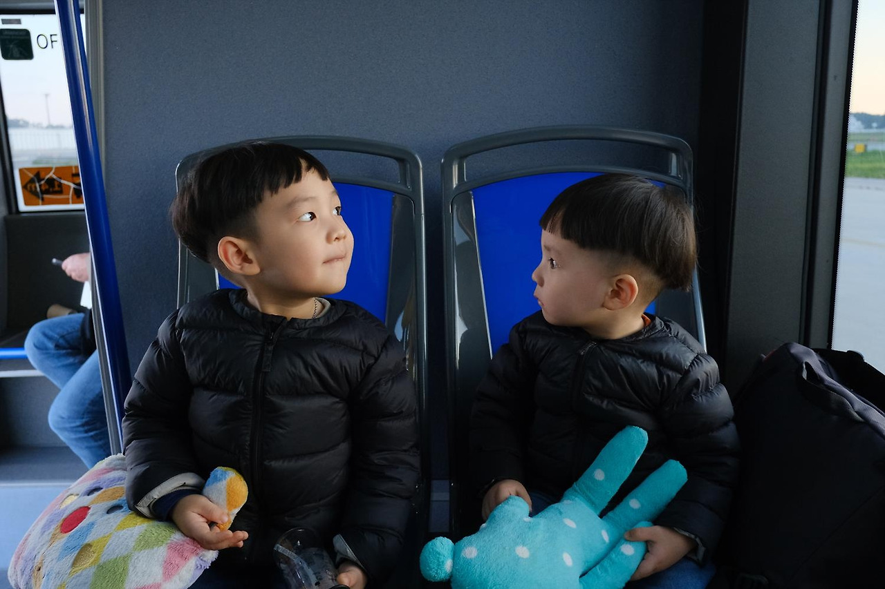비행시간이 짧지 않아 푹 자고 일어났는지 아이들도 피로가 조금은 풀린 느낌이다. 활주로에서 터미널까지 데려다 줄 버스에 탑승했다. 버스 안에 사람이 많진 않았지만, 앉을자리는 없었다. 아이들과 함께 자리를 잡고 섰는데, 어떤 젊은 유럽 커플이 흔쾌히 아이들에게 자리를 양보해 주었다.