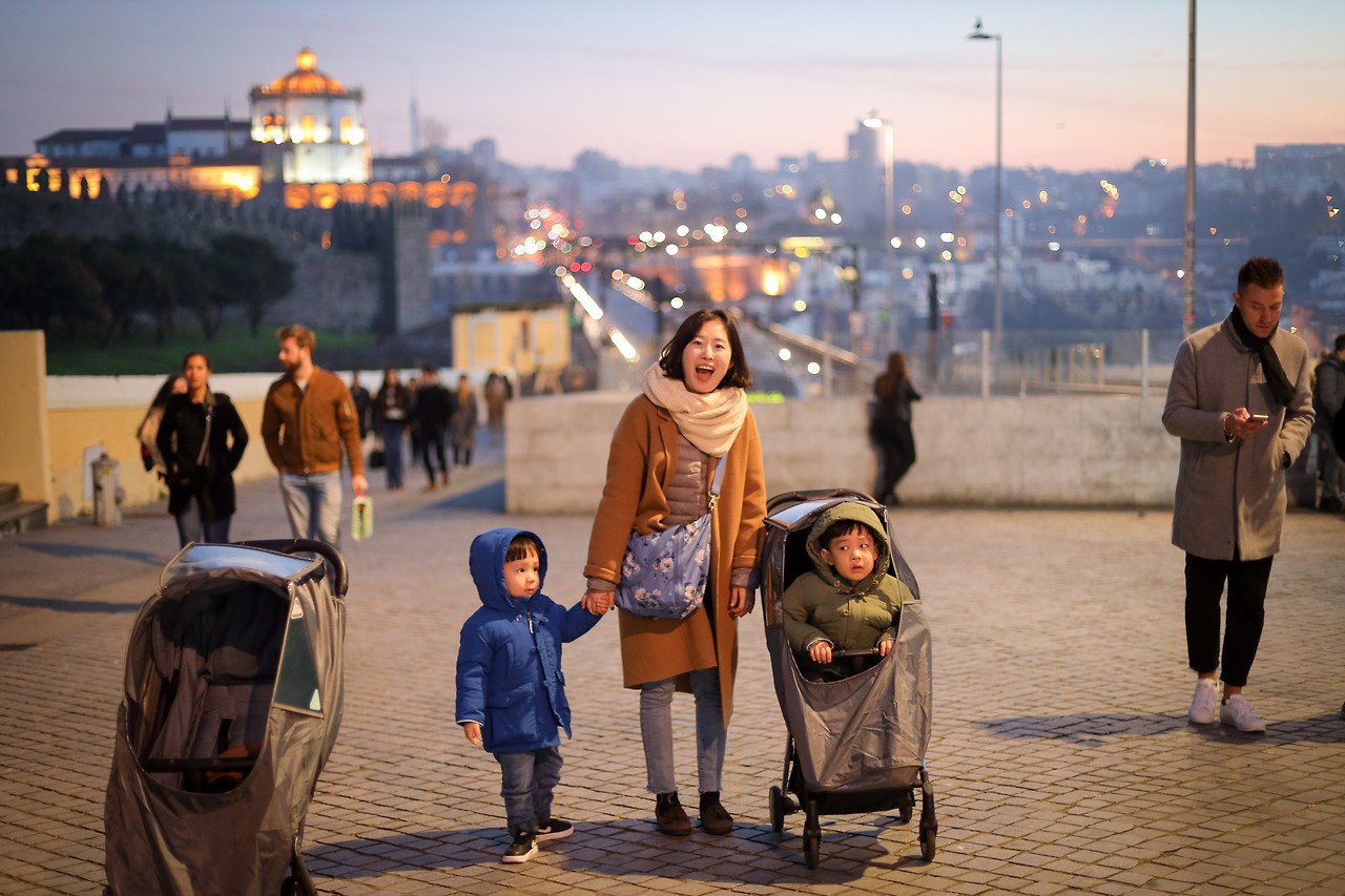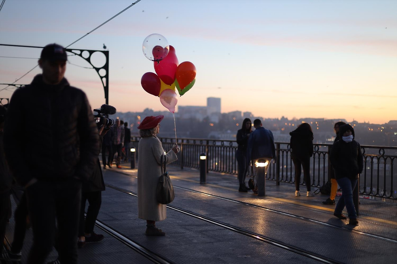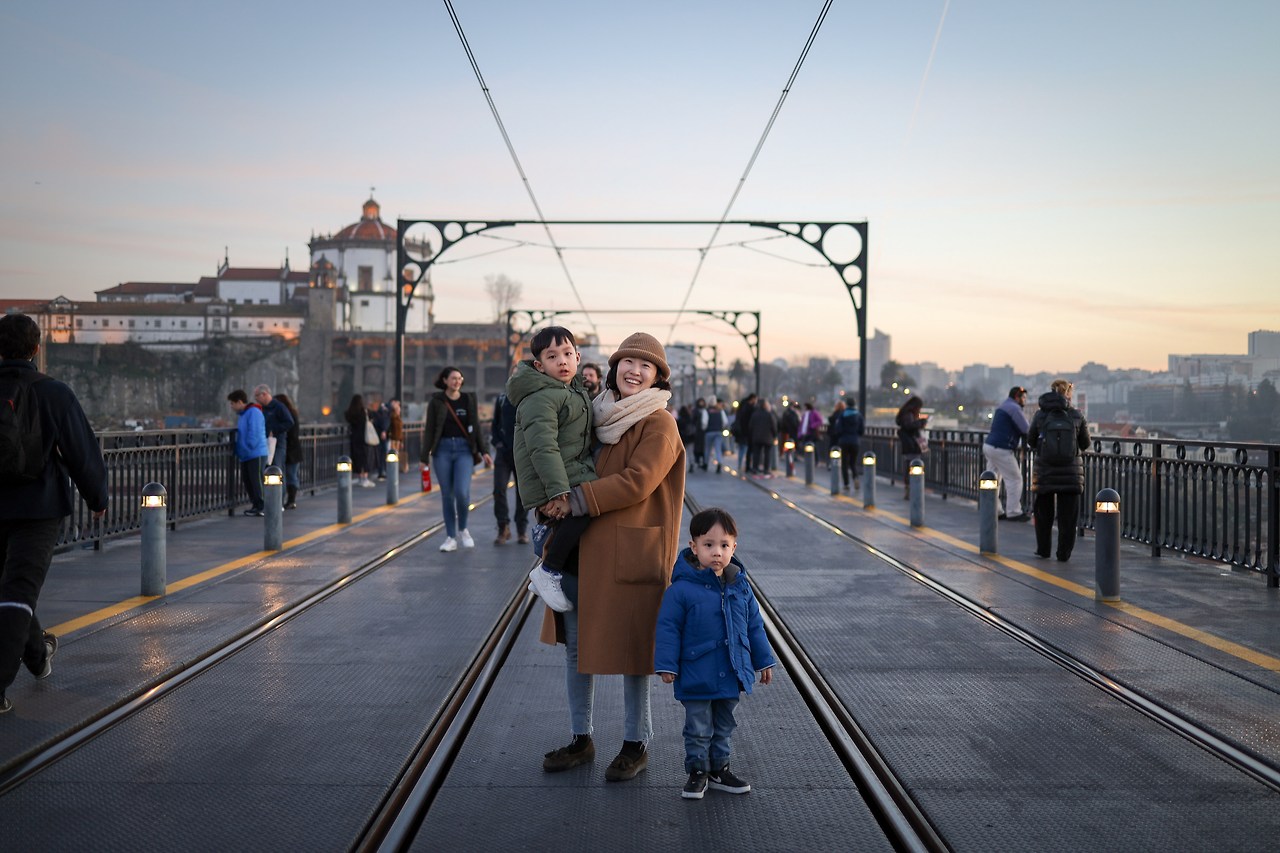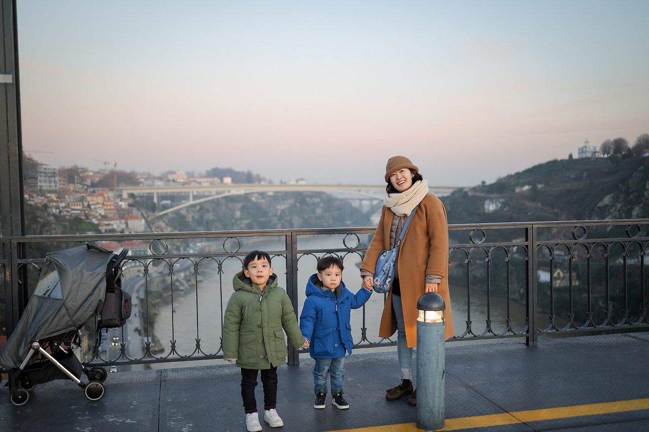 오후 5시. 마지막 남은 해열제를 먹이고, 아이 상태가 안 좋아지면 곧장 다시 들어오자는 다짐과 함께 길을 나선다. 숙소에서 동 루이스 다리까지도 걸어서 약 10분. 그러고 보니 숙소 위치가 정말 좋다. 그리고 목적지에 다가갈수록 점점 사람들로 붐비기 시작한다. 다리 위에선 유명인처럼 보이는 할머니의 사진 촬영도 하고 있다. 꽤 많은 촬영팀이 붙어 있는 걸로 봐선, 일반인은 아닌 듯 보인다. 할머니가 들고 계신 알록달록 풍선 덕에 아이들도 기분이 좋아지는 듯싶다.