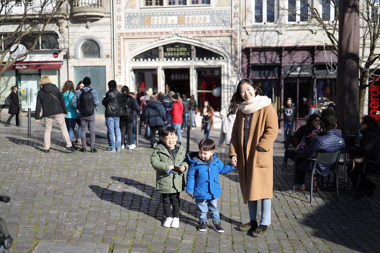 조금은 쌀쌀하지만, 아주 화창한 날씨. 이미 해가 지기 시작했던, 어제 오후 첫인상과는 느낌이 사뭇 다르다. 집에서 맥도널드까지 대략 10분 남짓. 전혀 멀지 않은 거리인데, 워낙 경사로가 많아 유모차를 끌고 다니기가 쉽진 않다. 아름다운 타일 장식으로 유명한 상 벤투 역(São Bento)을 지나 코너를 돌면 광장에 도착한다. 아직 점심시간 전이라 맥도널드는 비교적 한적했다. 놀랍게도 1층에 앉아 있는 많은 사람들은 대부분 동양인이다. (자리에 앉아 있는 동안 귀를 기울여 파악한 결과 거의 한국인이었다) 곧 점심을 먹어야 하기 때문에 우린 최소한으로 메뉴를 시키고 자리에 앉았다. 햄버거와 감자튀김, 나와 아내가 마실 커피, 아이들 주스까지. 흡사 이곳까지 와서 아무것도 먹지 않고 갈 수는 없어서, 마지못해 먹는 것 같은 느낌이다. 또한 너무나 당연하게도 아름다운 공간이라고, 더 맛있거나 하진 않았다. 그래도 무엇보다 넓어서 좋았고, 여기저기서 들려오는 익숙한 말소리에 편안함을 느낄 수 있는 곳이었다. 식사를 마치고, 아름다운 정문을 배경으로 사진을 남긴 후 다음 일정을 위해 발걸음을 옮긴다.