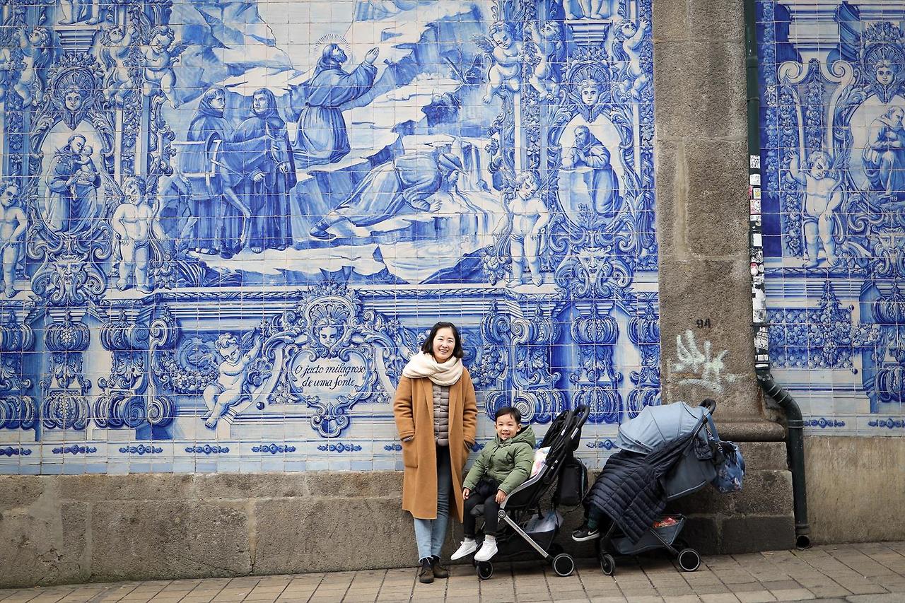 스타벅스는 길 건너편 또 다른 쇼핑몰인 La Vie Porto - Baixa 1층에 있다. 내가 주문하러 간 사이 아내는 아이들이 잠시 잘 수 있도록 설득을 한다. 한참을 폰을 가지고 영상을 보던 세온이는 자기 손에 휴대폰을 쥐고 자는 조건으로 눈을 감았고, 세현이는 잠들었지만 얼마 못 자고 깨고 말았다. 오래간만에 카페이서 휴식다운 휴식을 취한다. 아이가 아파 긴장을 했던 탓인지, 나도 아내도 조금 지쳐 있었나 보다. 스타벅스에 앉아 세현이와 이런저런 이야기를 나누며 한참을 휴식을 취했다. 따스한 노천 온천에 들어가 몸을 풀면 딱 좋을 그런 느낌이다. 생각보다 긴 시간을 스타벅스에서 보내고, 이제 기차 시간이 다 되어가기 때문에 일어나야 할 시간. 알마스 성당의 아름다운 타일 장식 앞에서 가족사진을 남기고 싶었는데, 세온이는 아직도 자고 있다. 막상 성당 옆 공간이 너무 좁아, 삼각대를 세우고 찍을 수도 없었다. 어쩔 수 없이 엄마와 세현이만 사진 촬영. 세온이는 유모차 안에 누운 채로 사진에 등장이다. 그리고 다시 매트로를 타고 캄파냥 역으로 이동한다.
