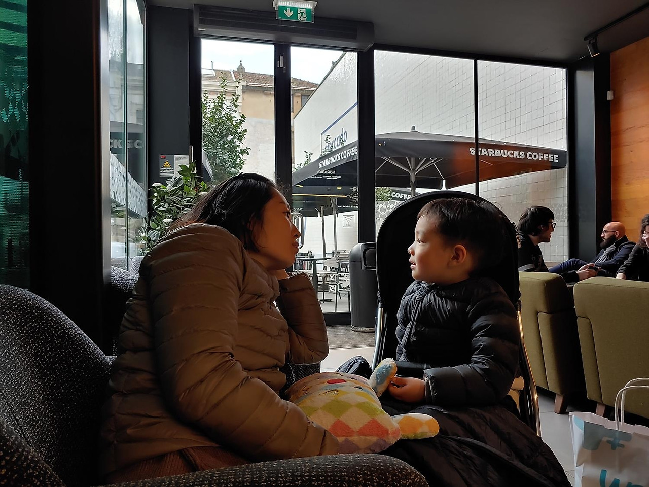 캄파냐 역에서 알마스 성당이 있는 Bolhao 역까지는 매트로로 3 정거장. 인근 쇼핑몰에 도착하니 11시 30분이 되었다. 알마스 성당 인근엔 몇몇 쇼핑몰이 자리 잡고 있다. 우리가 선택한 몰은 ViaCatarina라는 이름의 쇼핑몰. 별 다른 이유는 없고, 검색해보니 규모가 크고 식당가가 잘 되어 있었다. 우선 급하게 푸드코트로 가 음식 주문부터 했다. 오늘 메뉴는 크림 스파게티와 닭고기 스테이크. 여느 쇼핑몰의 푸드코트와 비슷한 맛을 보여주었다. 다만 가격대가 저렴해 만족스러운 식사였다. 식사를 마친 후 아이들 낮잠을 재우며 아이쇼핑을 할까 고민하다, 그냥 인근 스타벅스에 가 커피를 마시기로 했다. 날이 흐려서인지 아이들도 그렇지만, 나도 아내도 영 기운이 없다. 다크 로스팅된 스타벅스의 커피가 먹고 싶어졌다.