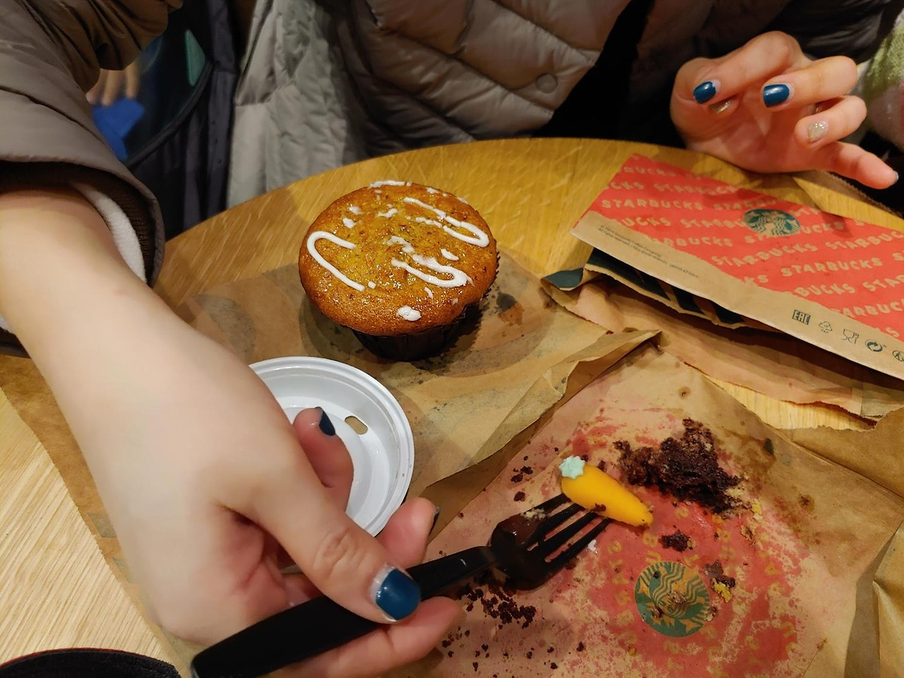 아이들은 금세 잠들었고, 아내와 나는 빈 시내 여러 상점들을 편하게 둘러볼 수 있었다. 그렇다고 마땅히 어딘가 갈 곳이 있는 건 아니었다. 옷을 구경하는 일도, 소품을 판매하는 상점도. 그냥 우리 마음이 지친 건지, 아니면 춥고 흐린 날씨 때문에 움츠리게 되어 그런 건지. 재밌게 느껴지지가 않는다. 아이들은 계속해서 자고 있고, 결국 스타벅스에 들어가 자리를 잡고 앉았다. 커피와 머핀, 케이크를 주문해 허기진 배를 채우며 시간을 보낸다.