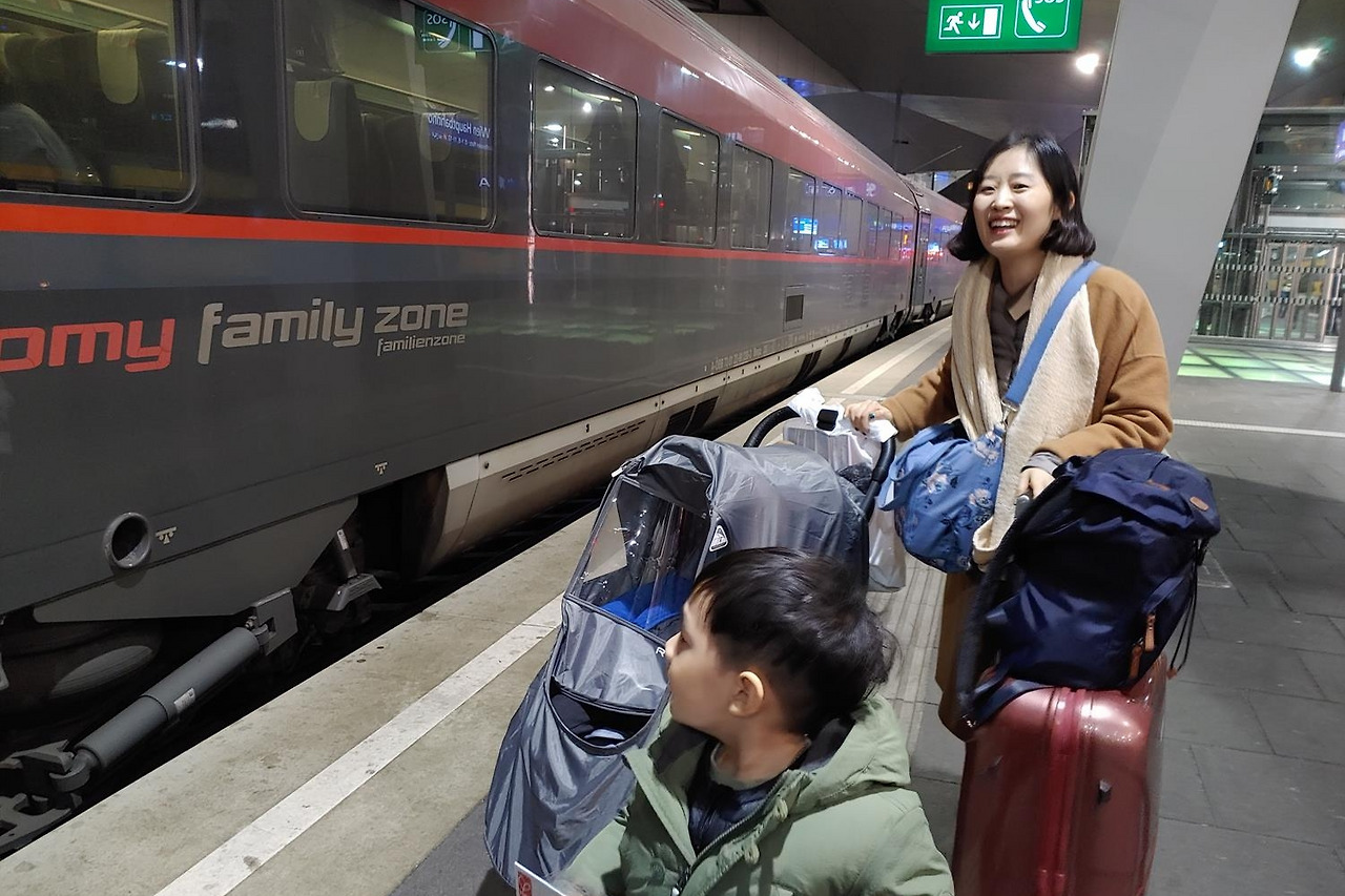 이제 돌아갈 시간이 됐다. 우린 다시 중앙역으로 복귀해 호텔에서 짐을 찾았다. 그리고 중앙역으로 다시 발걸음을 옮긴다. 세현이가 이제야 잠에서 깬다. 낮잠으로 거의 네 시간을 잤다. 그렇게나 오래 자고 일어난 아들의 모습을 보며, 마음이 아프면서도 이제 피곤이 풀렸을 거란 생각에 다행이란 생각도 든다. 애초 계획은 중앙역에 와서 저녁을 먹고 기차에 타는 것이었는데, 온이는 아직도 자고 시간도 애매해 우리는 기차에서 먹을 수 있게 음식을 포장을 했다. 아이들이 좋아할 만한 몇 가지 메뉴를 포장했고, 고이 싸들고 기차에 무사히 탈 수가 있었다.