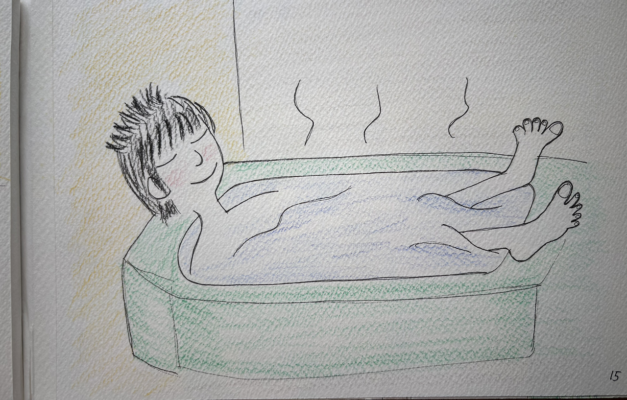 돌아왔더니 엄마가, "더러우니까 먼저 목욕하는 건 어때?"라고 말했습니다.