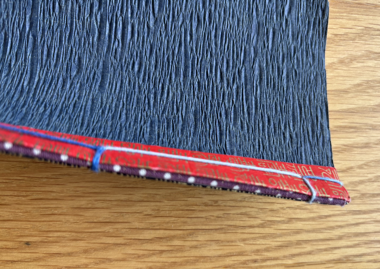 옛날 책처럼 종이를 묶어서 실로 엮었습니다.