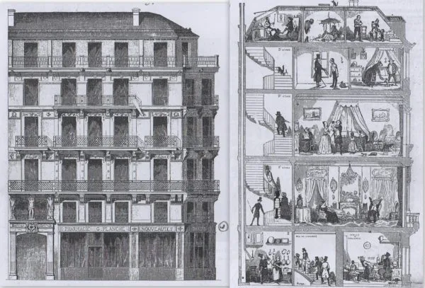 오스만 남작은 직선형 광대로를 개설하고, 그 길을 따라 세워질 건물의 높이와 외관 자재인 루테시안 석회암(Lutetian limestone) 의 사용을 법으로 규격화했습니다. 이때 탄생한 이뫼블 드 라뽀르(Immeuble de rapport, 수익형 투자 주택)는 당시 부르주아들이 임대 수익을 목적으로 지은 일종의 '자본주의형 집합주택'의 시초가 되었습니다.