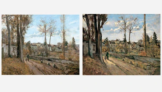 전쟁이 끝난 1871년, 마흔한 살의 나이에 파리 근교 루베센(Louveciennes)의 집으로 돌아왔을 때, 그는 자신의 인생이 난도질당한 광경을 목격해야 했습니다. 프러시아 군인들은 피사로의 캔버스가 방수가 잘 된다는 점을 이용해, 그 그림들을 진흙투성이 마당의 '야채 깔개'로 쓰거나 고기를 써는 '앞치마'로 만들었습니다. 심지어 겨울 추위를 이기기 위해 캔버스를 땔감으로 태워버리기도 했죠.