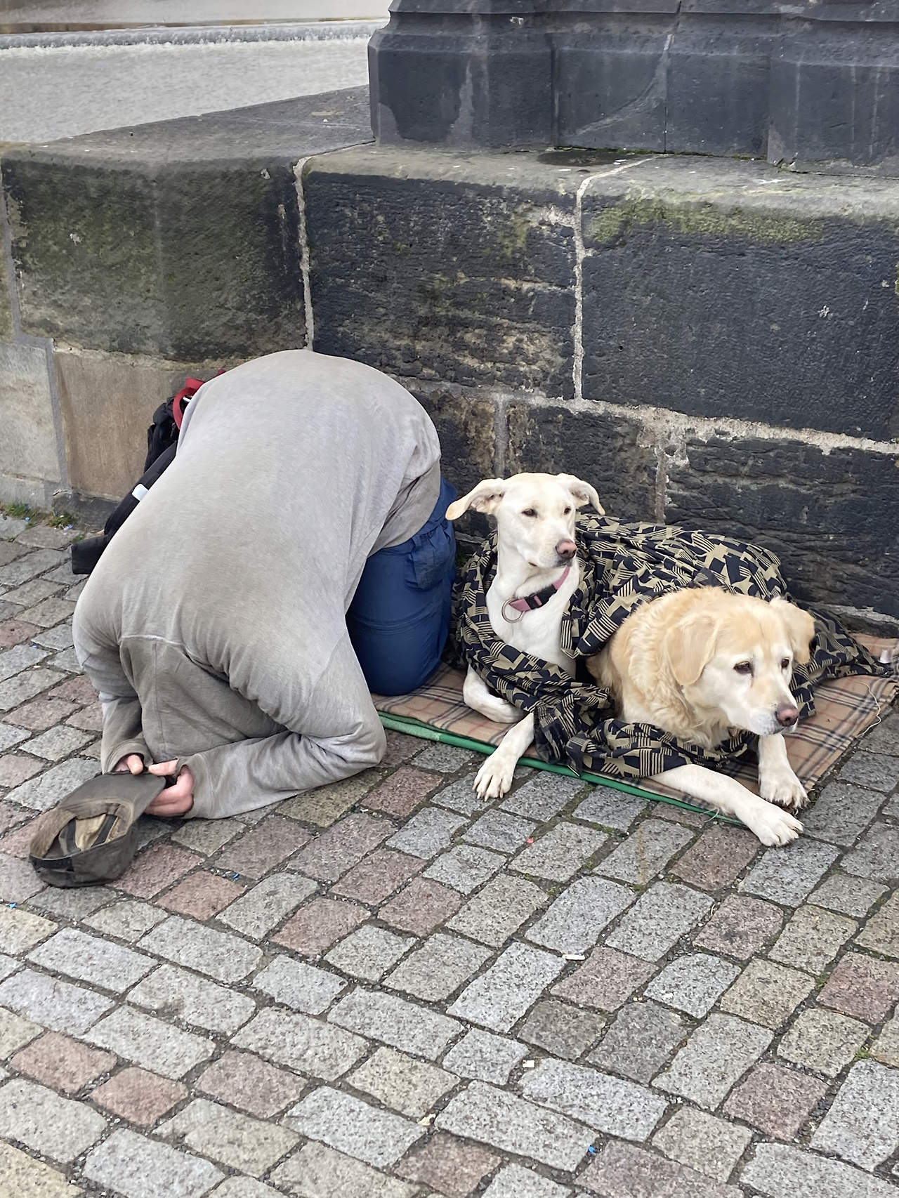 가이드 및 프라하 전문가에 의하면 체코는 유럽에서도 손 꼽히는 반려견 애호국이란다. 이 도시의 수호성인인 얀 신부도 비밀을 털어 놓은 생명체가 개였다고 하니 말 다했다. 지하철, 식당 등 못 들어가는 곳이 거의 없으며 반려견 등록이 필수일만큼 동물권이 높단다. 그래서 노숙하면서도 개들한테 담요를 덮어줬는갑다.