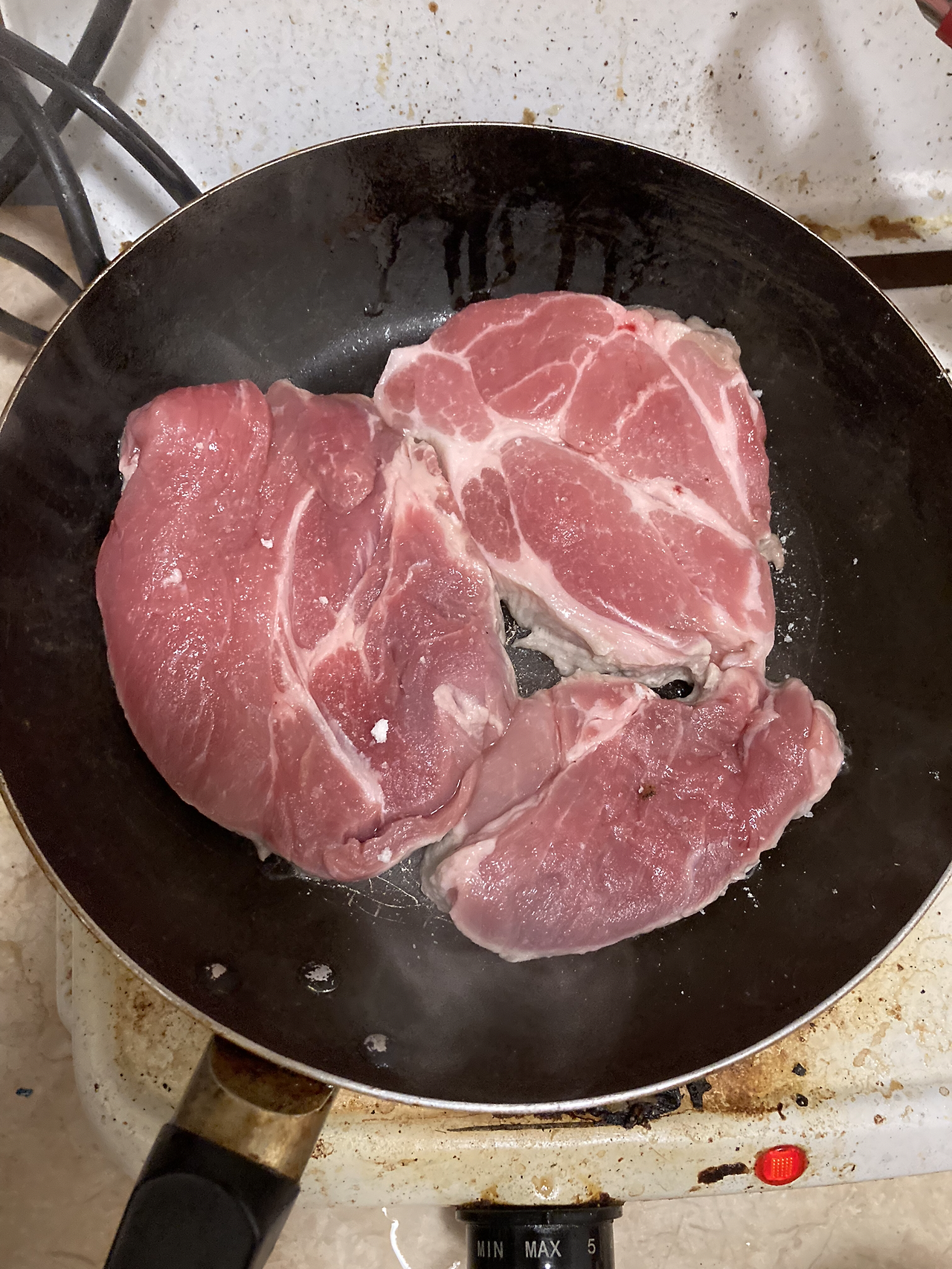 400g에 3천원도 하지 않는 가격에 목살을, 600원에 대파 한 줄기까지. 야무지게 구운 후 김치와 햇반까지.