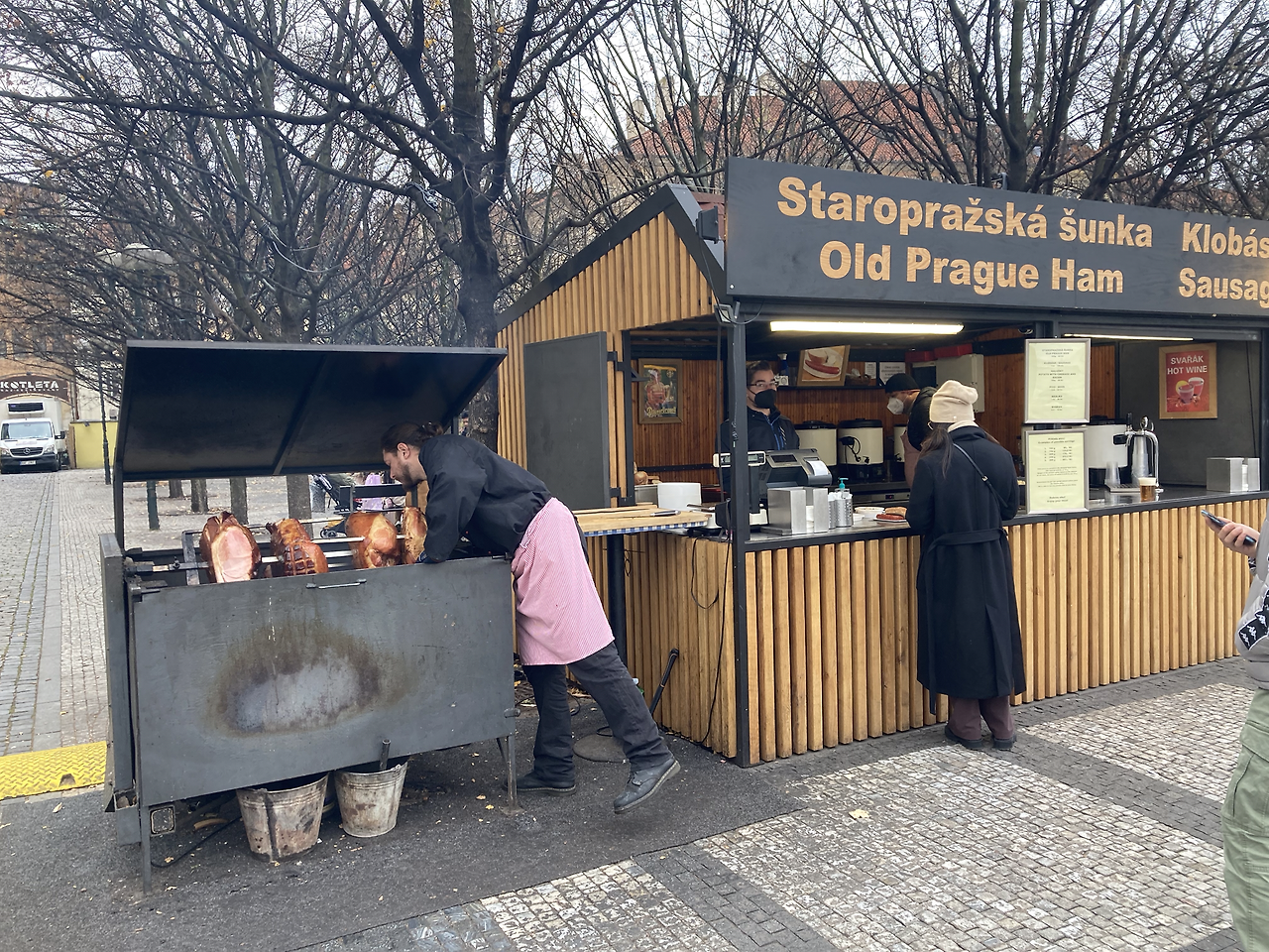 아침을 파짜장으로 거하게 먹은지라 전혀 출출하지 않았으나, 저런 영롱한 돼지 통구이를 그냥 지나치기는 쉬운 일이 아니다. 맥주 한 잔까지 곁들여 약 9천원. 전통시장에 가면 파는 통구이 삼겹살과 맛이 비슷허다. 이제 임박한 크리스마스 마켓 준비과정을 구경하며 얼마 남지 않은 프라하에서의 시간을 아쉬워하며 얼마 남지 않은 생맥주로 목을 축여 본다.