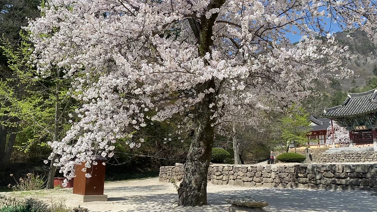 거기에 사찰 뒤에 자리한 능가산(관음봉)의 비경과 사찰 내의 오래된 역사를 지닌 건축물들, 그리고 한적한 산사의 느낌이 어우러져 가히 전국 최고의 벚꽃 뷰를 만들어냅니다. 특히 만개를 지나 바람에 벚꽃비가 날릴 때가 되면 내소사의 벚꽃 뷰는 가히 극강이 됩니다.