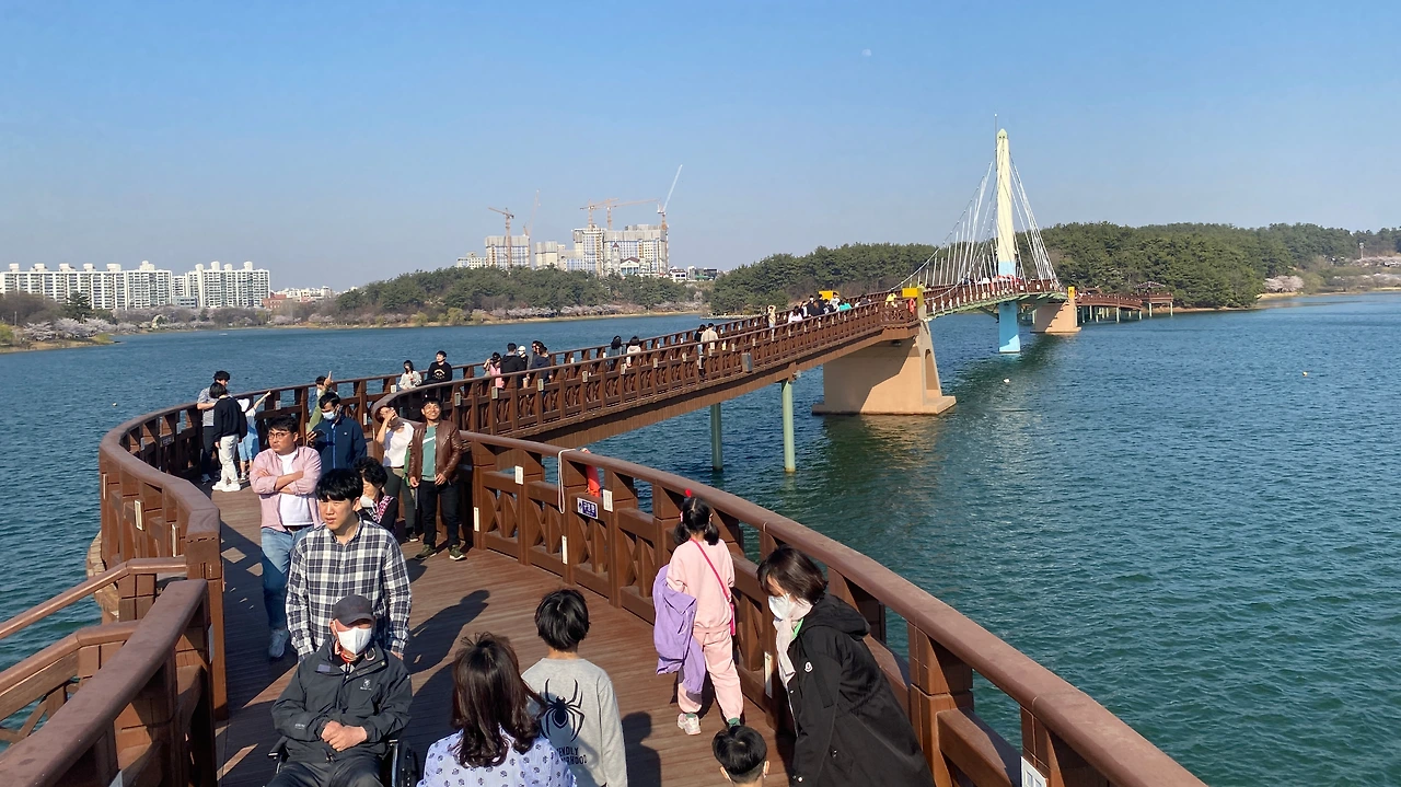 전북 군산의 곳곳에는 벚나무가 밀도 있게 심어져 장관을 이룹니다. 서해안고속도로 군산IC 길목에서부터 금강변을 따라 이어지는 수변로 등 시내 곳곳에서 연분홍의 색이 카메라를 들게 만듭니다. 그중에서도 은파호수공원 은 군산 벚꽃여행의 최고 하이라이트입니다.