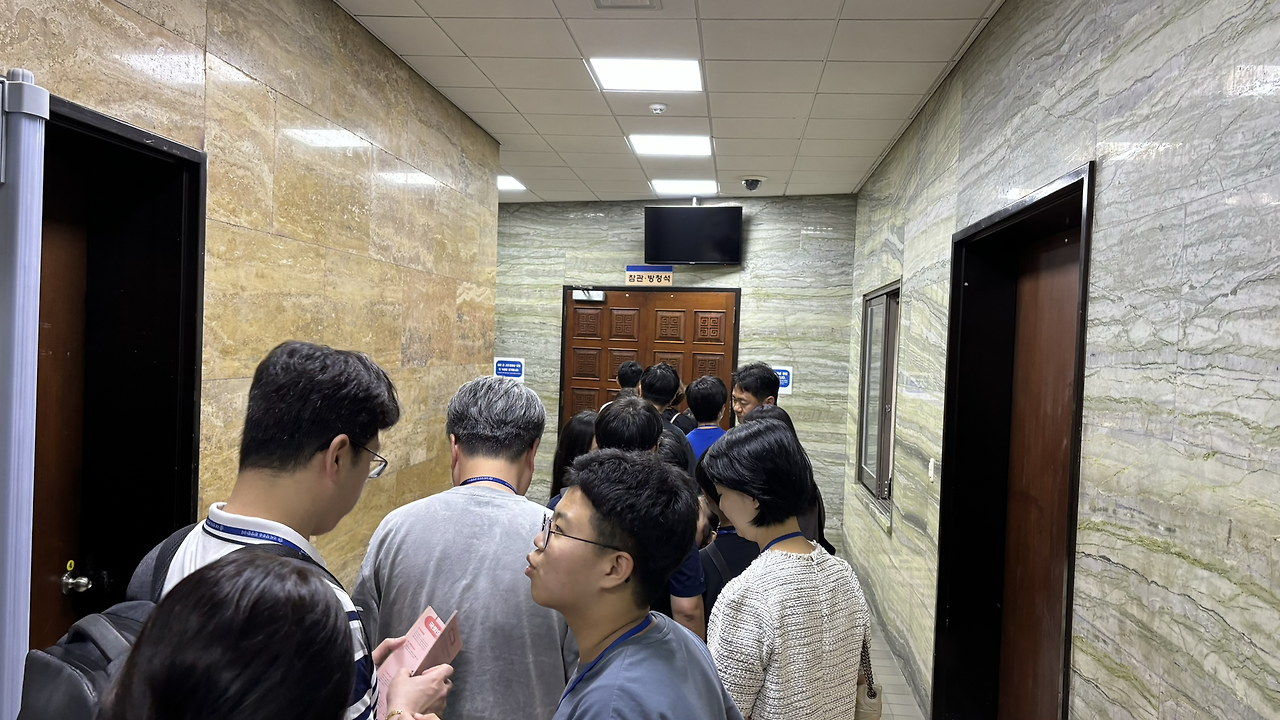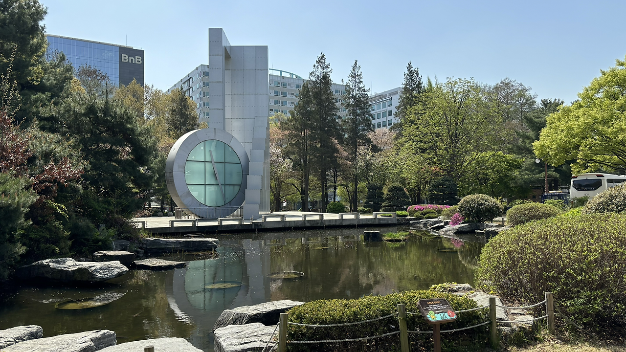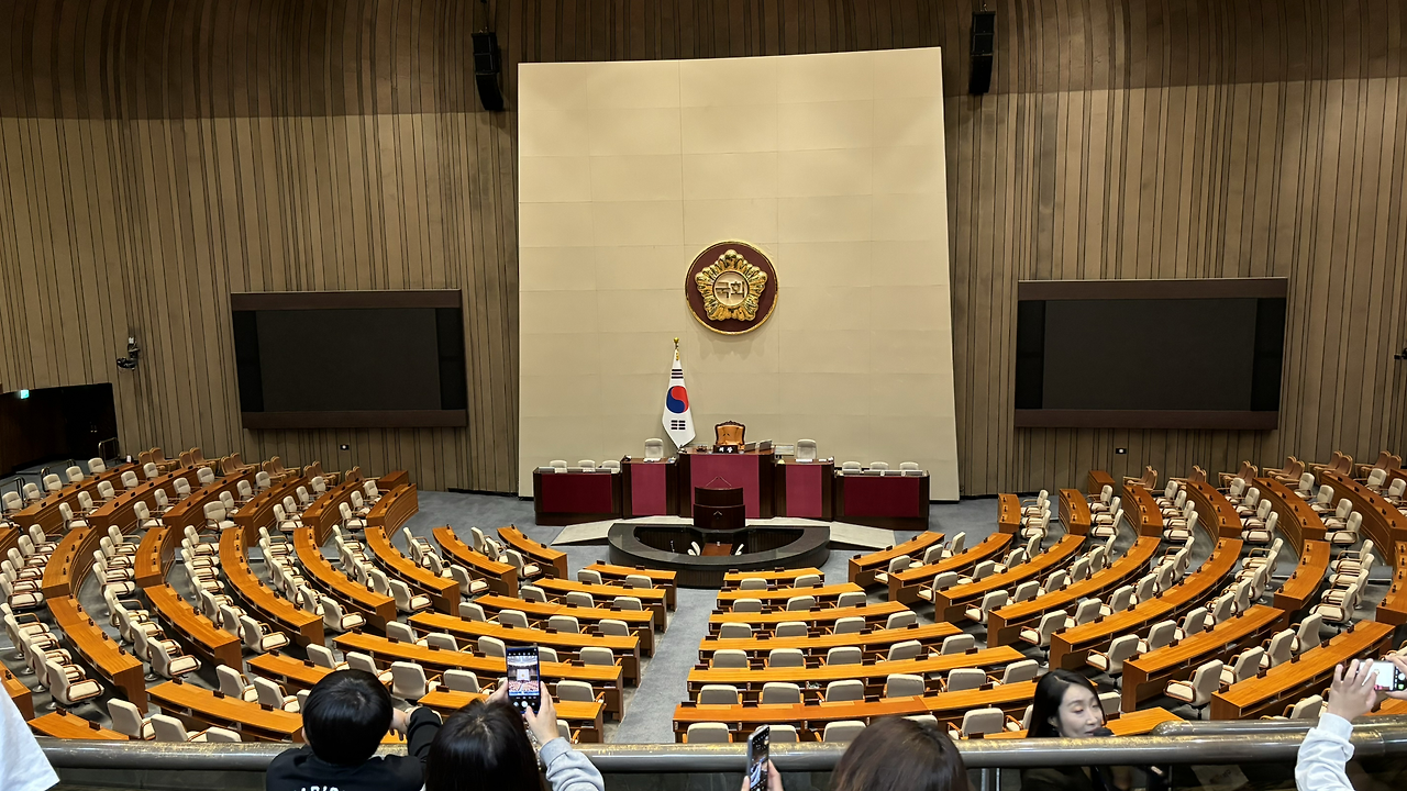 이제 본회의장 참관을 위해 보통 '국회의사당'으로 알려져 있는 국회 본관으로 이동합니다. 무게 1천 톤짜리 거대한 청동 돔을 이고 있는 독특한 건물로 가히 여의도의 랜드마크이자 서울 전체의 랜드마크입니다. 이 건물에는 24개의 기둥이 있는데 이는 24절기를 상징하며, 24절기 내내 국민의 여론을 받아 (돔 모양처럼) 하나로 수렴한다는 의미를 가지고 있다고 합니다. 믿거나 말거나...