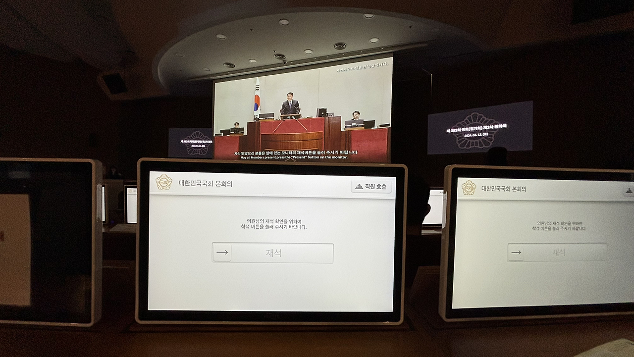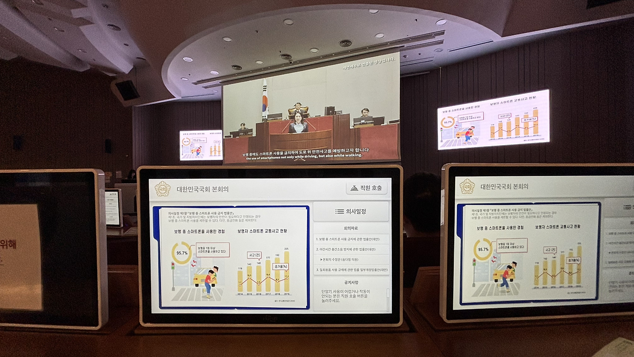 대형 모니터에 가상의 국회의장과 국회의원 등이 등장하여 실제 국회 본회의의 의사진행과 똑같이 진행을 하는데, 국회에서 근무했던 저도 놀랄 정도로 리얼하게 구현되어 있습니다. 좌석 앞으로는 실제 의원들이 쓰는 전자모니터도 올라와서 가상의 법률안 세 가지를 놓고 직접 가부 투표까지 하고 그 결과까지 듣게 됩니다. 교과서에서 공자왈 맹자왈 할 것 없이 이 체험 프로그램 하나면 국회의 입법이 뭔지 충분히 알 수 있을 것 같습니다.