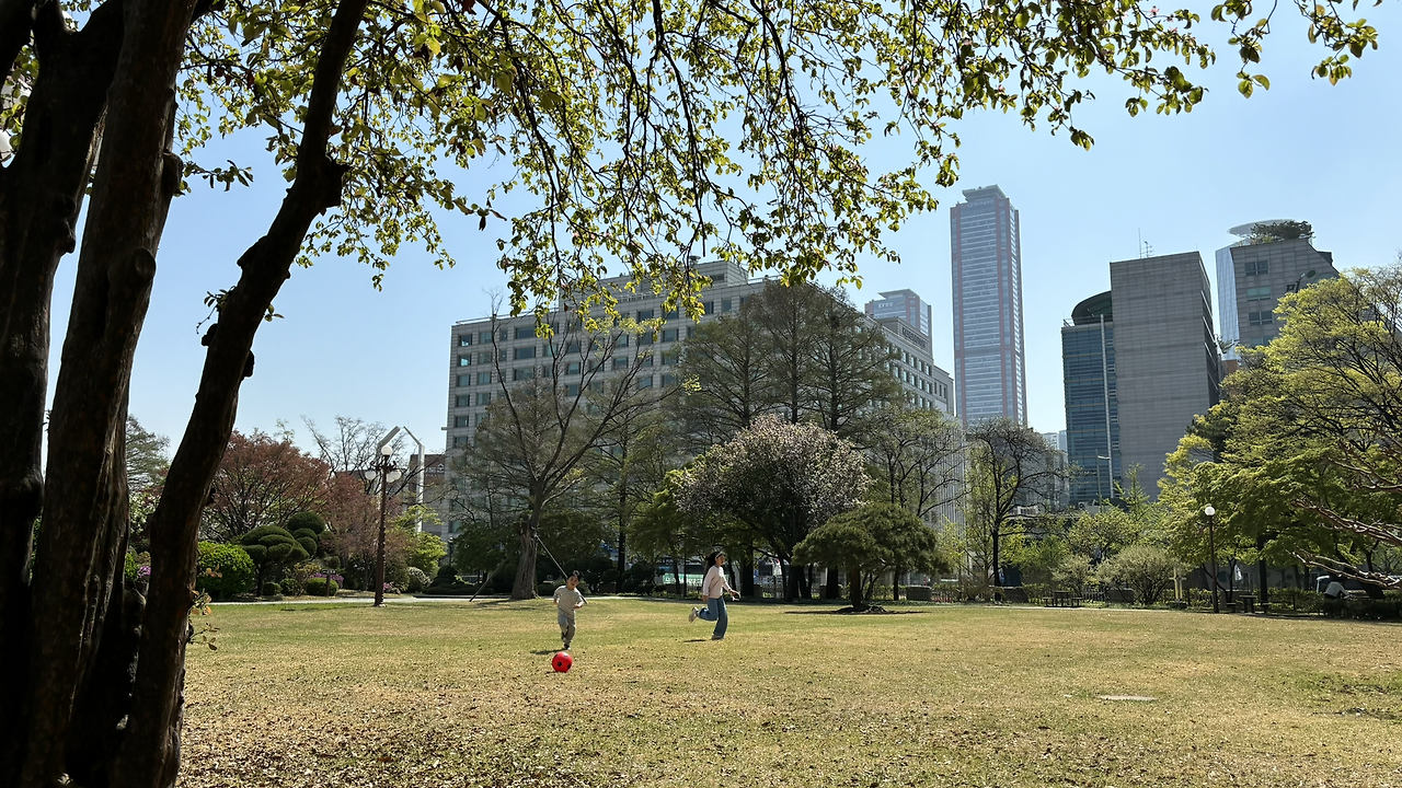 박물관을 다 보고 나와서는 조금 시간이 남아 근처 잔디밭에서 잠깐 놀게 했습니다. 사실 아이들이 이렇게 맘 놓고 잔디 위를 뛰어다닐 수 있는 곳은 별로 많지 않습니다.