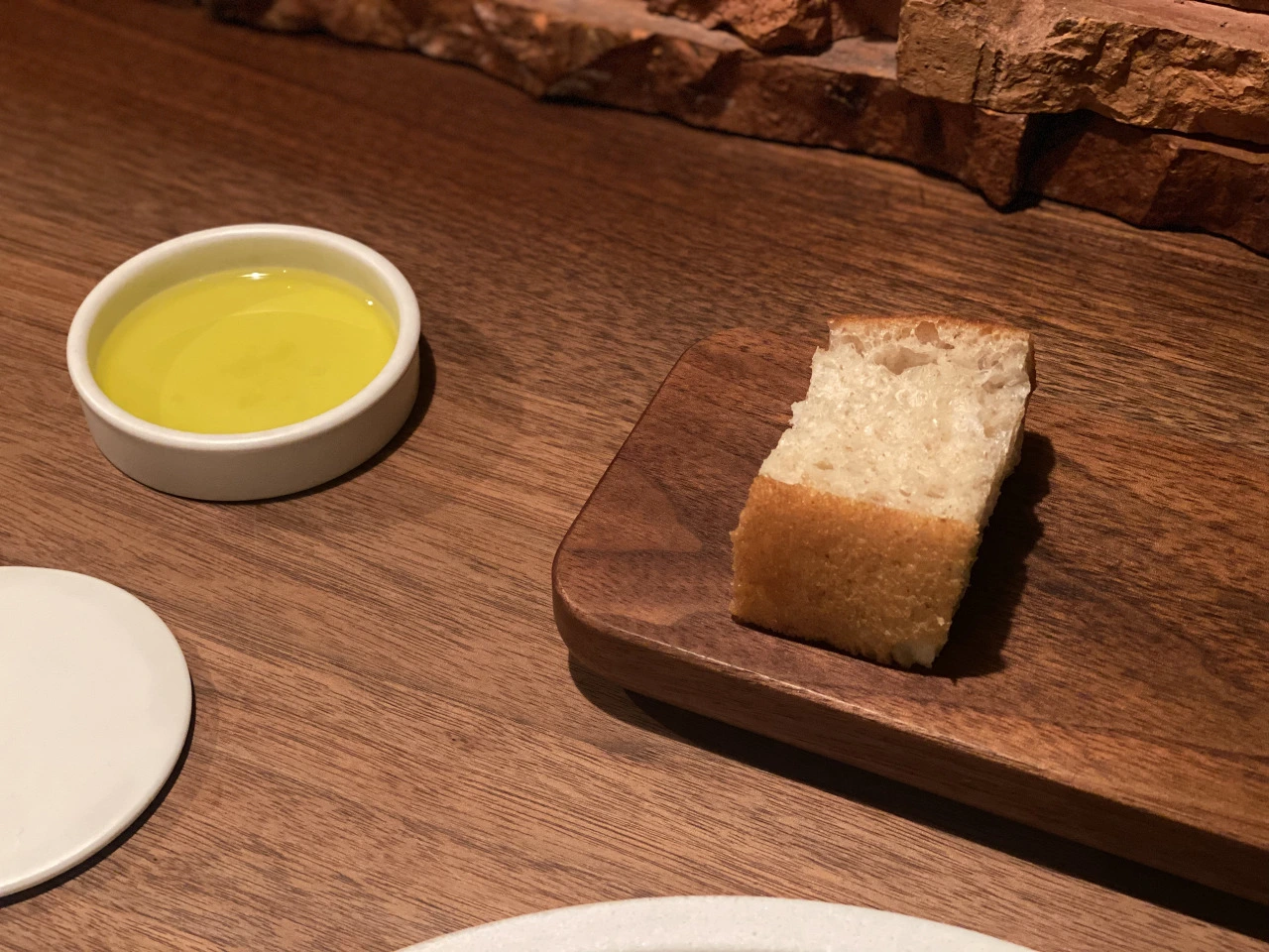 그런데 웬걸... 갔더니 입구에 들어가자마자 있는 바 자리를 주는 게 아닌지? 그래서 난 테이블로 예약했다고 얘기하니, 나이 좀 있으신 여자 서버가 아 그러냐면서, 미안하지만 오늘 예약 만석이라며 아주 단호하게 딱 잘라 말하는 거다. (사실 미안한 기색 1도 안 느껴졌고, 오히려 나는 절. 대. 너의 그런 짜치는 컴플레인은 받아줄 수 없어,라는 전투적 의지가 느껴졌다고나 할까... 후에 이 이야기를 친구에게 했더니 "아, ‘스미마셍~' 이런 느낌이 아니었구나?"라고 했는데 정확한 표현이었다.) 자리에 착석 후 둘러보니 예상과 다르게 규모가 훨씬 큰 레스토랑이었고, 금요일 저녁이라 그런지 정말로 이미 만석이었고, 1인 손님은 나 하나였기 때문에 내가 이 바 자리에 앉게 된 것은 이해할 수 있었는데 (바 자리는 딱 4인석이었고, 나 말고 어느 일본인 부부 한 팀이 더 있었다), 사실 이 상황을 설명해 줄 때 "미슐랭" 식당에 기대하는 만큼의 서비스로 좀 "친절하게" 설명해 주면 좋지 않았을까?라는 아쉬움이 컸다. 아니면 차라리 그 예약 페이지에 우리가 이런 문구를 써놨다,라고 다시 설명이라도 해주던지. 그 문구가 있던 게 맞는지 내 기억이 긴가민가했으므로. (아니, 구글 후기에서는 이곳 접객이 정말 너무 친절하다는 칭찬이 많아서 접객에 대한 기대를 했던 것도 큰데, 진짜 이건 예상하지 못한 전개였다.) 첫인상이 이래놓고 나니 이미 식사 시작 전부터 사실 기분이 매우 별로였고... 기분 나쁘니 술은 시키지 말아야지라고 괜히 다짐했다. 애써 기분 좋게 식사에 임하려 노력해 봐도 그 서버의 냉정함이 계속 뇌리에서 거슬렸고 이미 상한 기분은 돌아올 기색이...