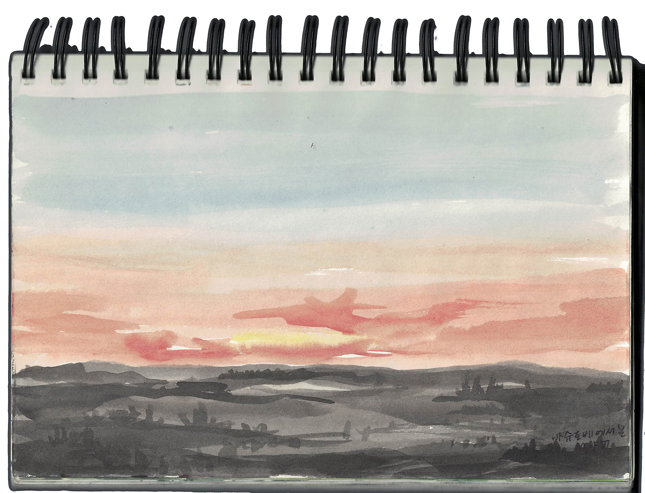 묘지밖에는 아무 것도 없는 바슈토베 언덕을 떠나지 못하고 맴돌고 있는 사이 해가 지고 있었다. 지는 해를 잡을 듯 몇 걸음 다가섰다가 어둠에 잠기기 시작한 황량한 땅과 붉게 물들어가는 광활한 하늘에 멈춰서서 넋을 놓고 바라보고 있었다.