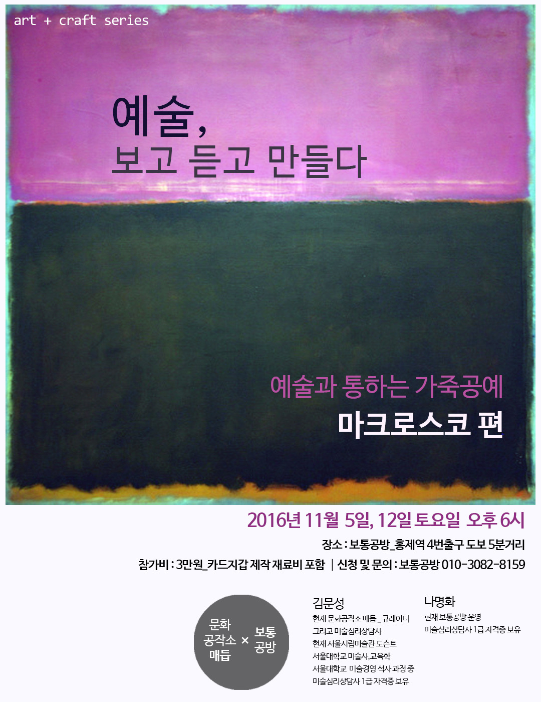 2016년-17년 일상예술화, 예술일상화를 위한 예술+공예체험프로그램_“예술과 통하는 가죽공예: 보고 듣고 만들자.” 을 진행했습니다.