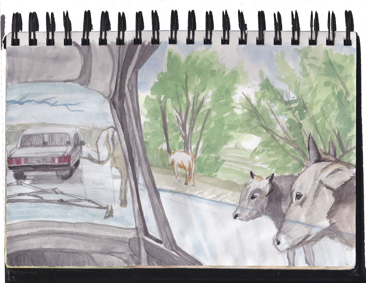 차를 타고 가다가 종종 맞닥뜨린 광경. 차가 미친듯이 질주하다가 앞에 선 차를 보고 멈춘다. 어슬렁어슬렁 아주 천천히 소떼와 양떼가 지나간다. 지나가다 말고 차 옆에서 풀을 뜯다가 차앞에서 주저 앉아버리고 또 호기심에 차서 차안을 들여다보기도한다. 그것들이 모두 지나갈 때까지 꼼짝도 하지 못하고 멈춰서서 기다린다. 떠나고 남은 뽀오얀 먼지를 보며 시동을 켜고 아무 일도 없었다는 듯 차는 다시 달리기 시작한다.