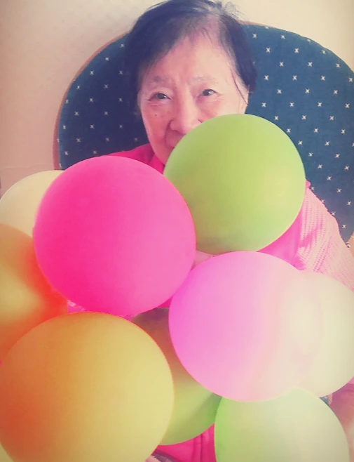 우리는 웃으며 풍선을 껴안고 풍선들 속에서 사진을 찍었다.