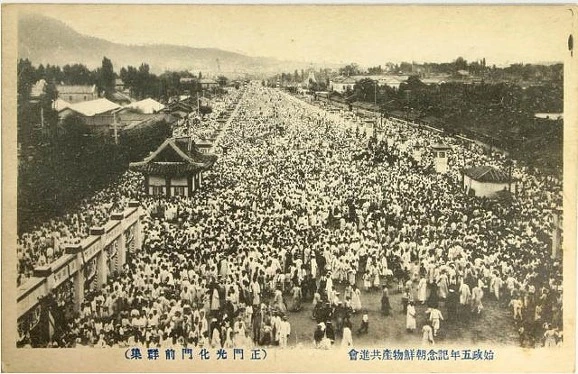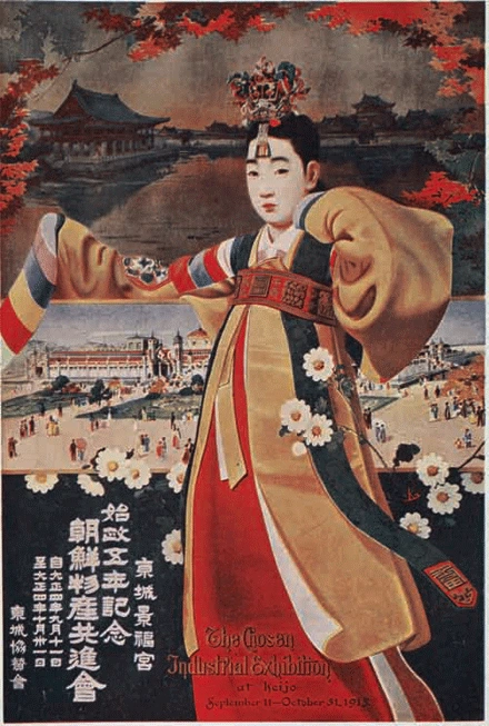 Poster of the Joseon Products Show 1916년 일제 조선총독부의 공진회보고서(共進會報告書) 게재된 포스터사진