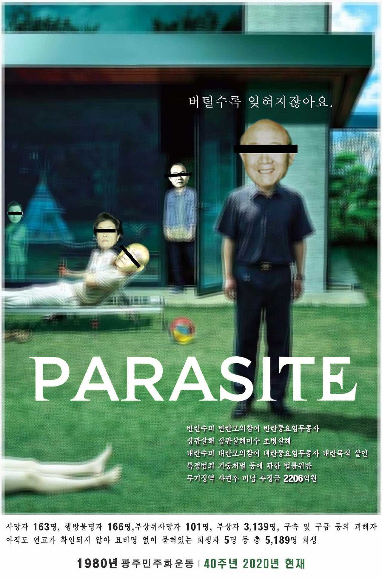 본 작업은 영화 기생충 포스터를 노골적으로 차용한 패러디 포스터이다. 한국사회의 후기자본주의적인 상황, 사회적 불평등과 계급투쟁을 보여주는 영화 기생충의 근저에는 그와 같은 상황을 가능케한 독재정권이 존재했음을 보여주고자 했다.