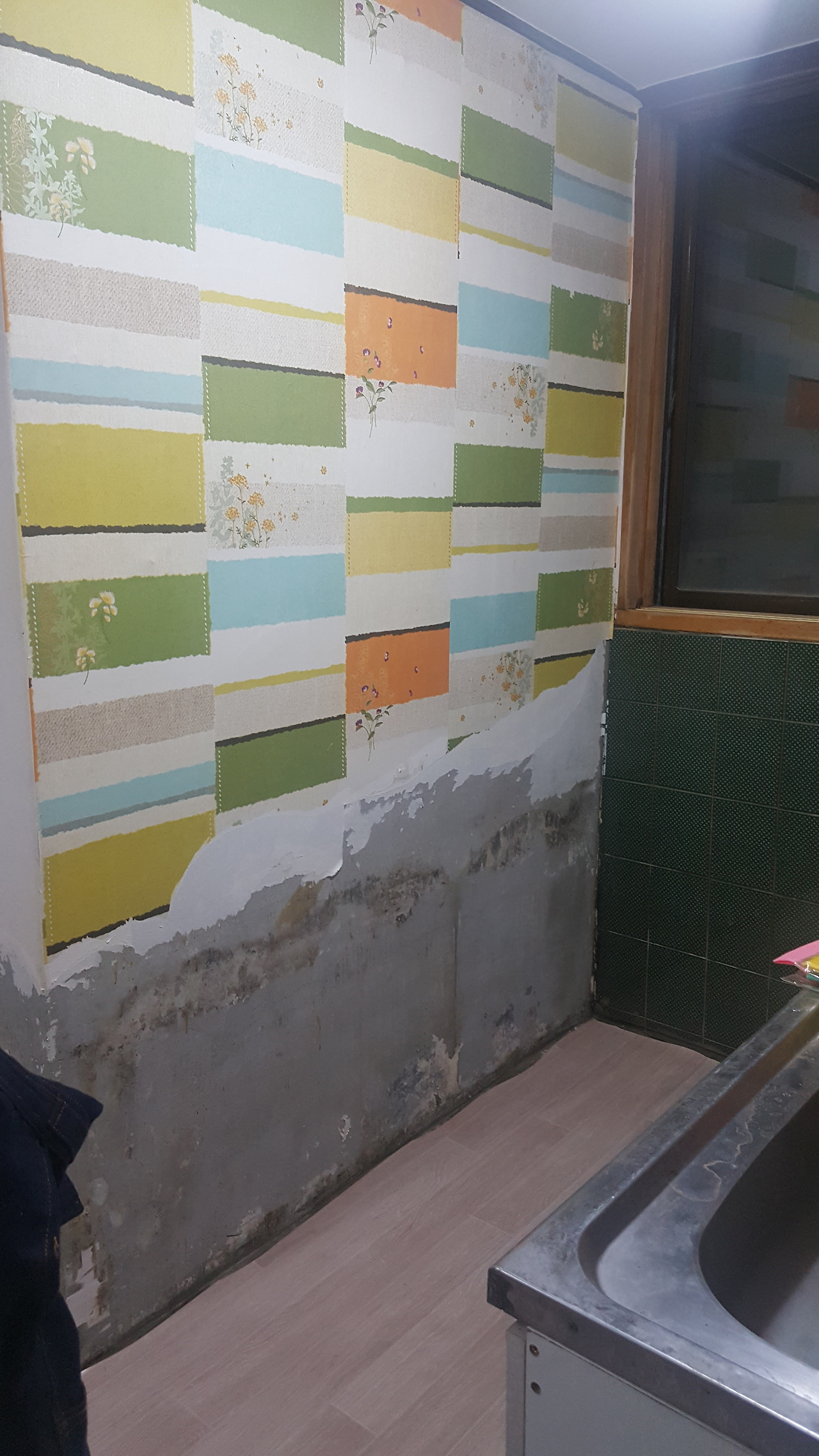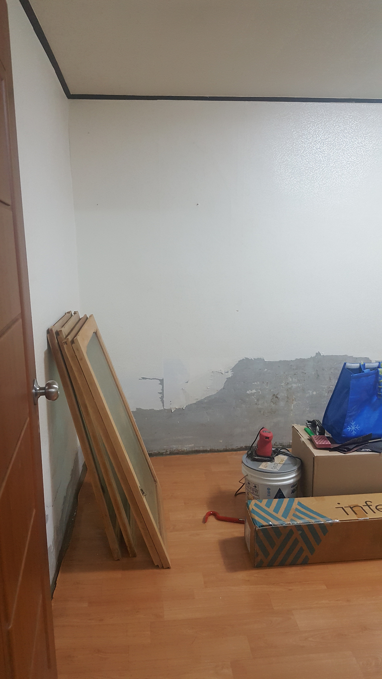 강력한 업소용 청소기를 빌려 거미줄과 먼지를 빨아들이고 창문들을 떼어내 물청소. 오래된 창틀을 사포질 후 다시 한번 청소기로 빨아들였다. 화장실의 타일과 변기, 하수구까지 청소하고 마무리하고 벽면에 덕지덕지 붙은 스티로폼방한지. 덧붙인 벽지를 거침없이 뜯어냈다. 스트레스 해소가 되는 기분도 잠시. 뜯어내면 뜯어낼수록 곰팡이가 창궐한 벽면을 덮어두고 있었음을 확인하며 경악에 경악. 땀범벅에 녹초가 되어서 끝났을 때에는 이미 창밖은 어둑어둑.