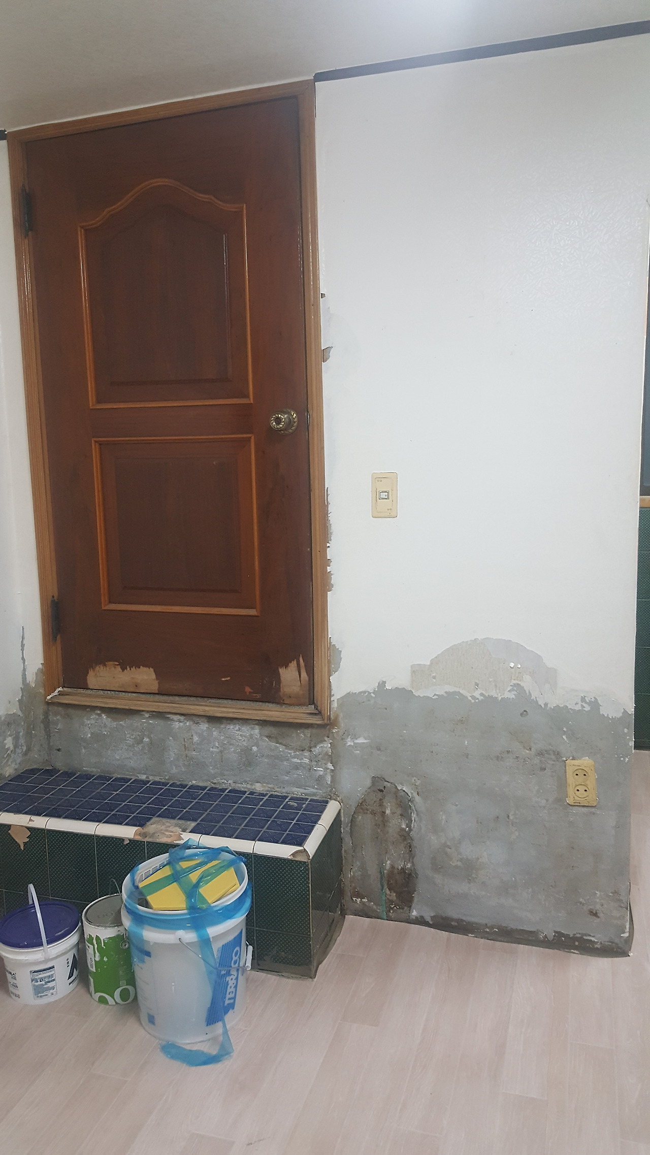 오랫동안 비어있던 반지하의 눅눅함. 하수구에서 올라오는 악취. 거미와 곰팡이의 콜라보레이션를 딛고 인테리어를 시작. 출발은 청소와 철거.