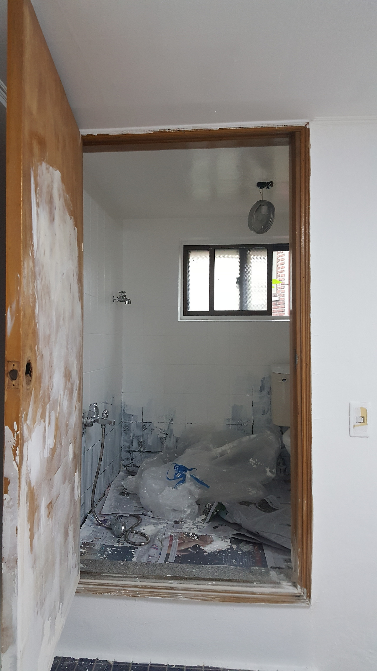 화장실 역시 무광 약간의 미색이 도는 화이트 우레탄페인트로.