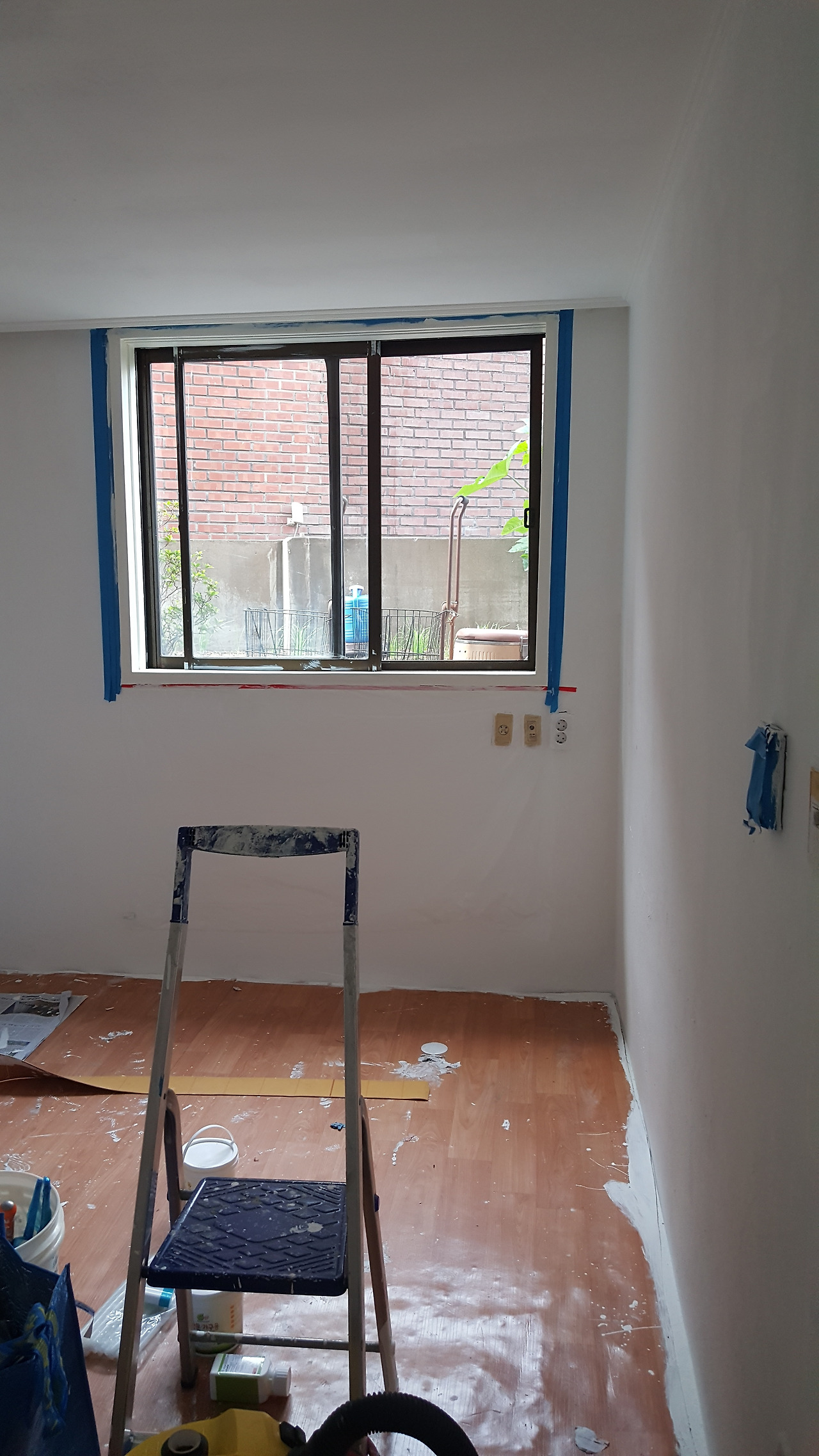 페인팅 후에 창틀, 창문틀도 칠했다. 무광 약간의 미색이 도는 화이트 수성페인트.