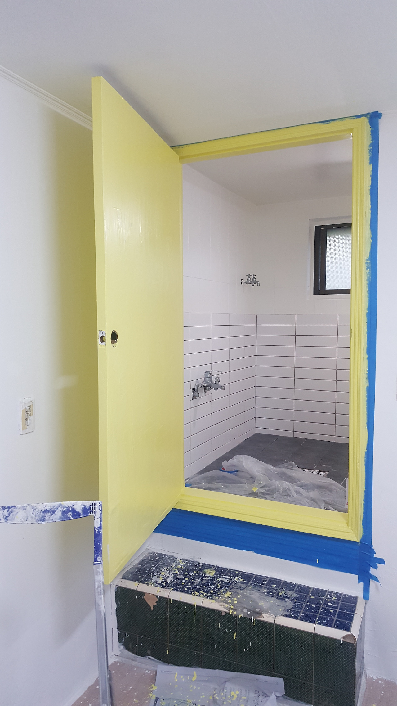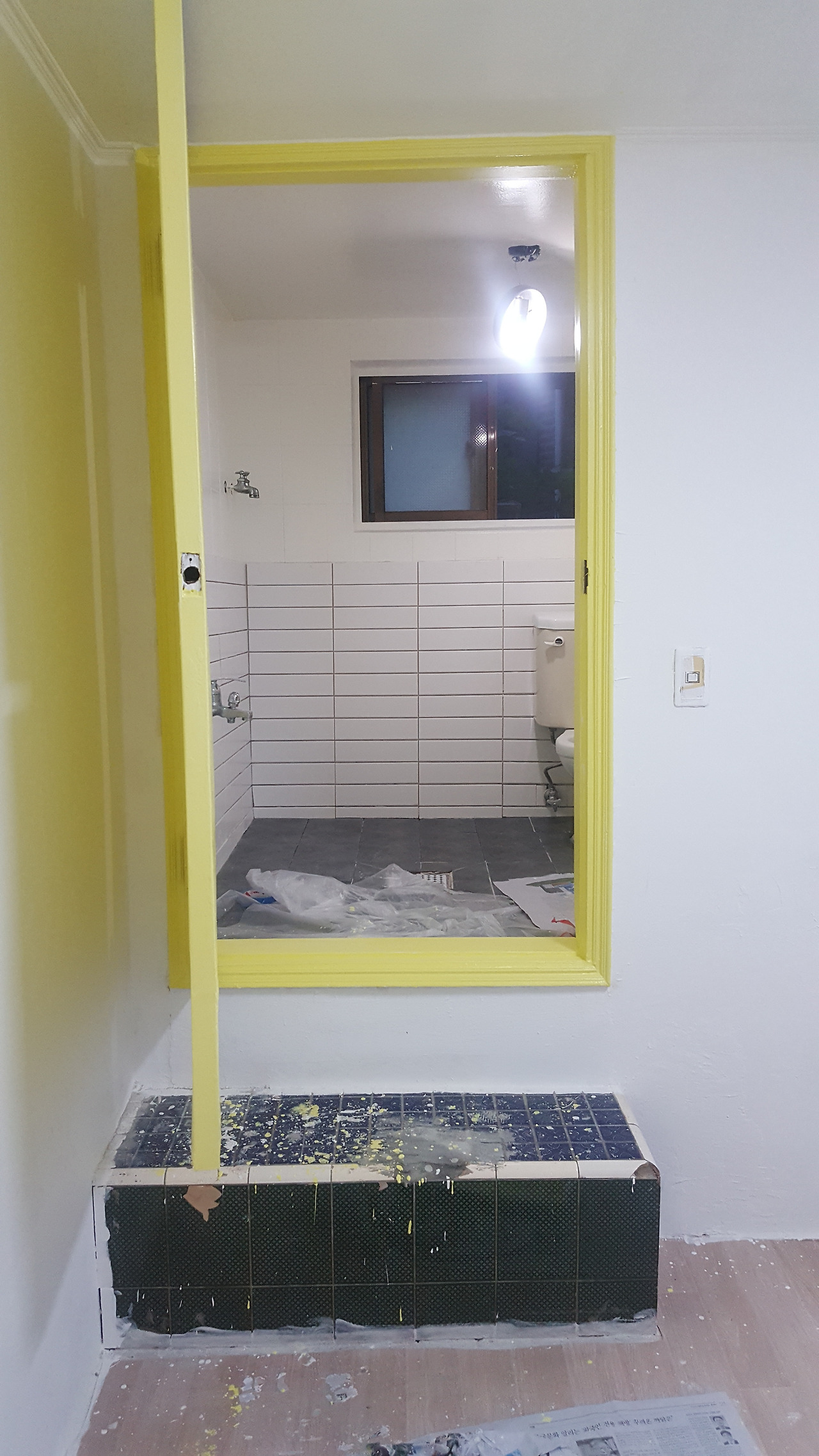 욕실문 방수페인팅: 나무샌딩, 썩은 부분을 제거하고 벌어지고 뒤틀린 부분을 세라픽스와 급속건조시멘트로 메꾼뒤, 퍼티작업 그리고 지쳐 나가떨어졌다가 일때문에 친구에게 맡겨두고 나갔다가 돌아왔는데. 친구가 페인트칠을 마무리해주었다. 달콤하고 화사한 색깔. 이미 내가 골라둔 색이었지만 깜짝선물같았다. 어둡고 작은 집에 이쁘고 환한 불을 켜둔 것 같아서 나도 모르게 기분이 좋아지는 그런 따뜻한 위로.