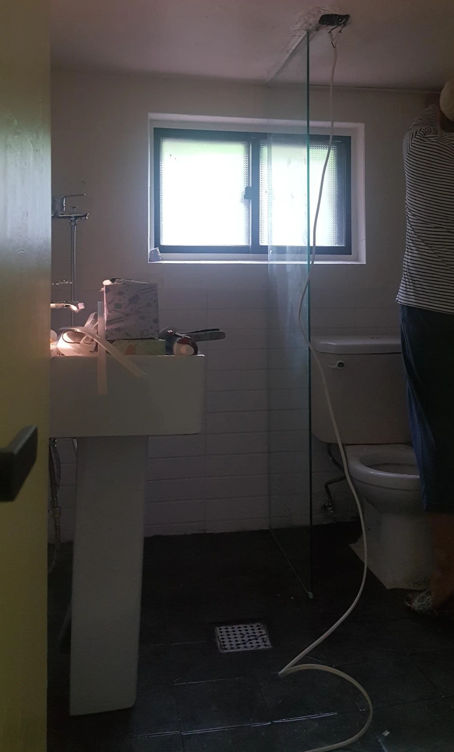 다만 그 위에 유리칸막이를 설치했다. 이것도 꽤나 힘든 작업이었다. 친구가 엄청나게 애를 써줬다. 천장의 콘크리트를 전동그라인더로 갈아내어 위치를 만들고 주문해둔 강화유리판을 달았다. 좀더 편안하고 쾌적한 생활공간으로 만들고 싶었기에 조명 역시 다시 달기로 하고 전선을 정리하고 비데는 반드시 있어야한다는 친구의 주장으로 천장전선에서 선을 더 뽑아서 연장해 비데의 전기를 공급할 수 있는 콘센트도 만들어두었다. 장마의 끝자락이 되어서야 드디어 욕실작업을 진행하고 있었다.