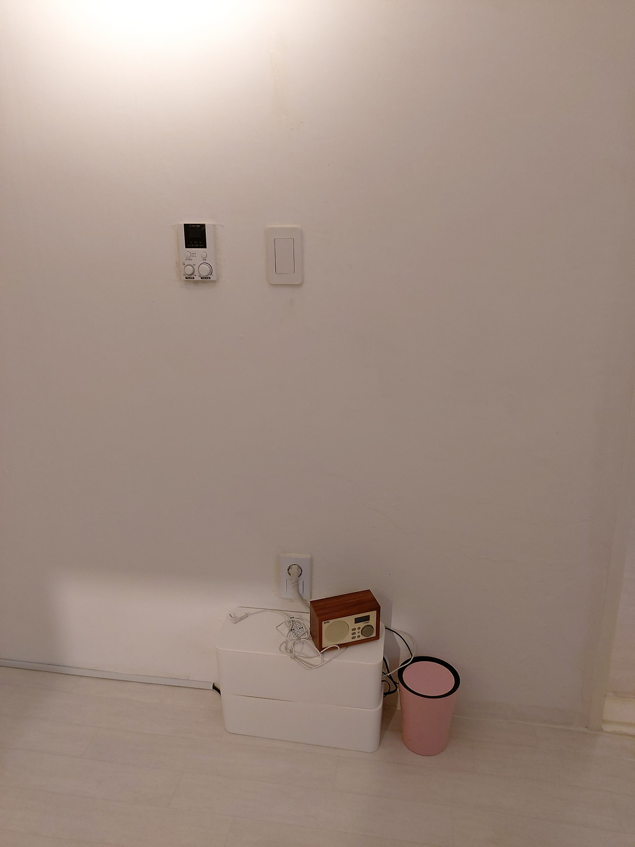 옷과 관련된 물건들에 자꾸 먼지가 쌓여 필요한 것들만 남기고 책장에 유일하게 문이 있는 칸에 정리해두었다. 생활하며 필요한 전선들, 컨센트의 갯수를 확인해보고 먼지가 쌓이지 않도록 전선정리함을 두개 구입해서 정리. 늘 음악과 함께하는 터라 빼먹을 수 없는 블루투스 스피커 그리고 쓰레기를 줄이고 싶은 마음에 쓰고 있는 작은 쓰레기통까지. 먼지가 확실히 줄었다.