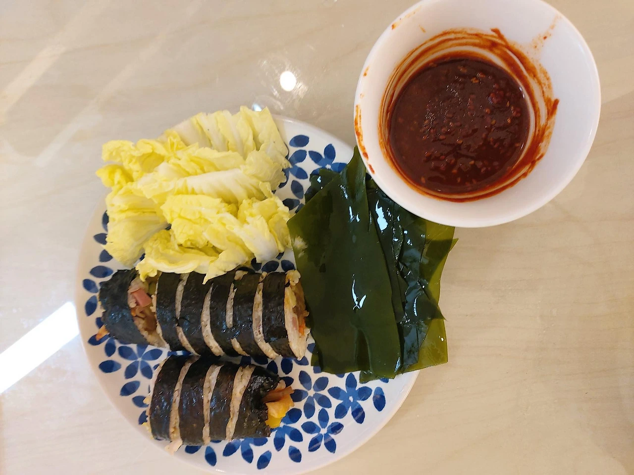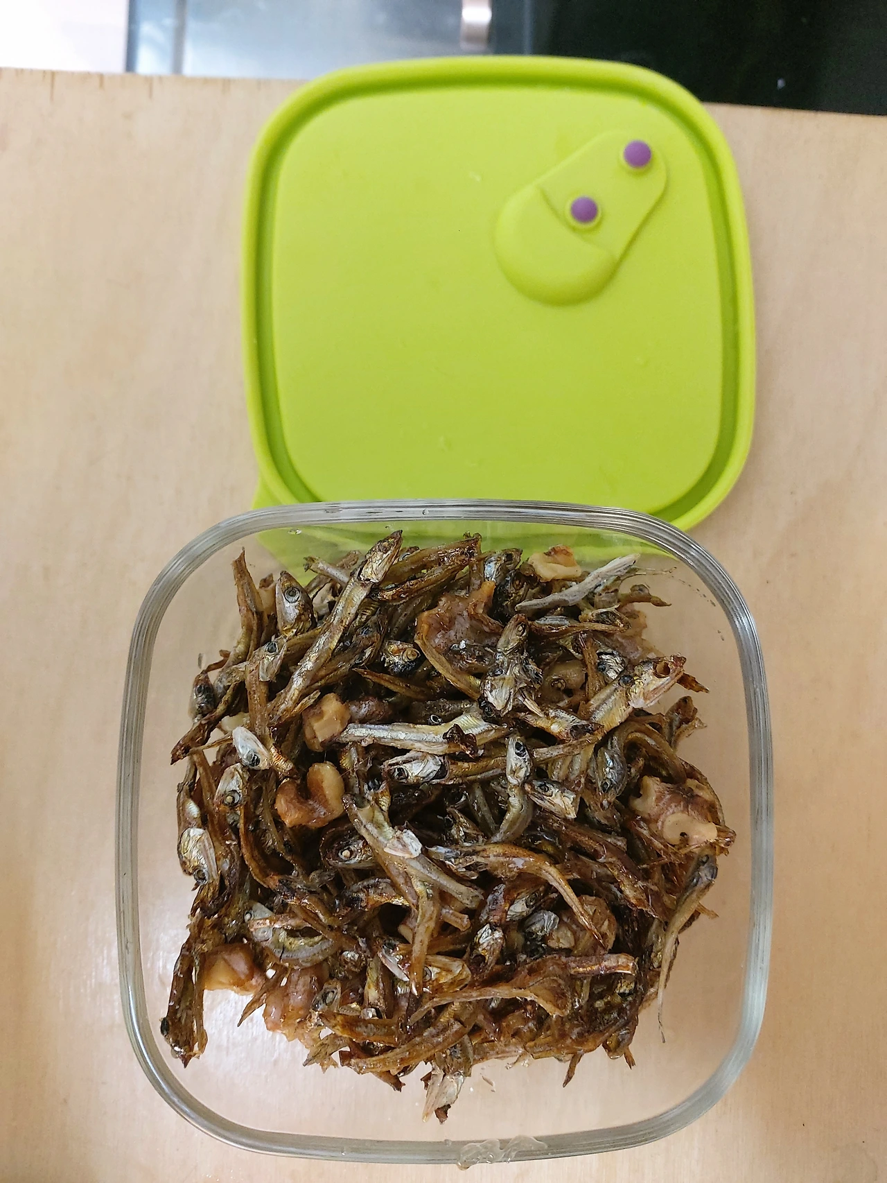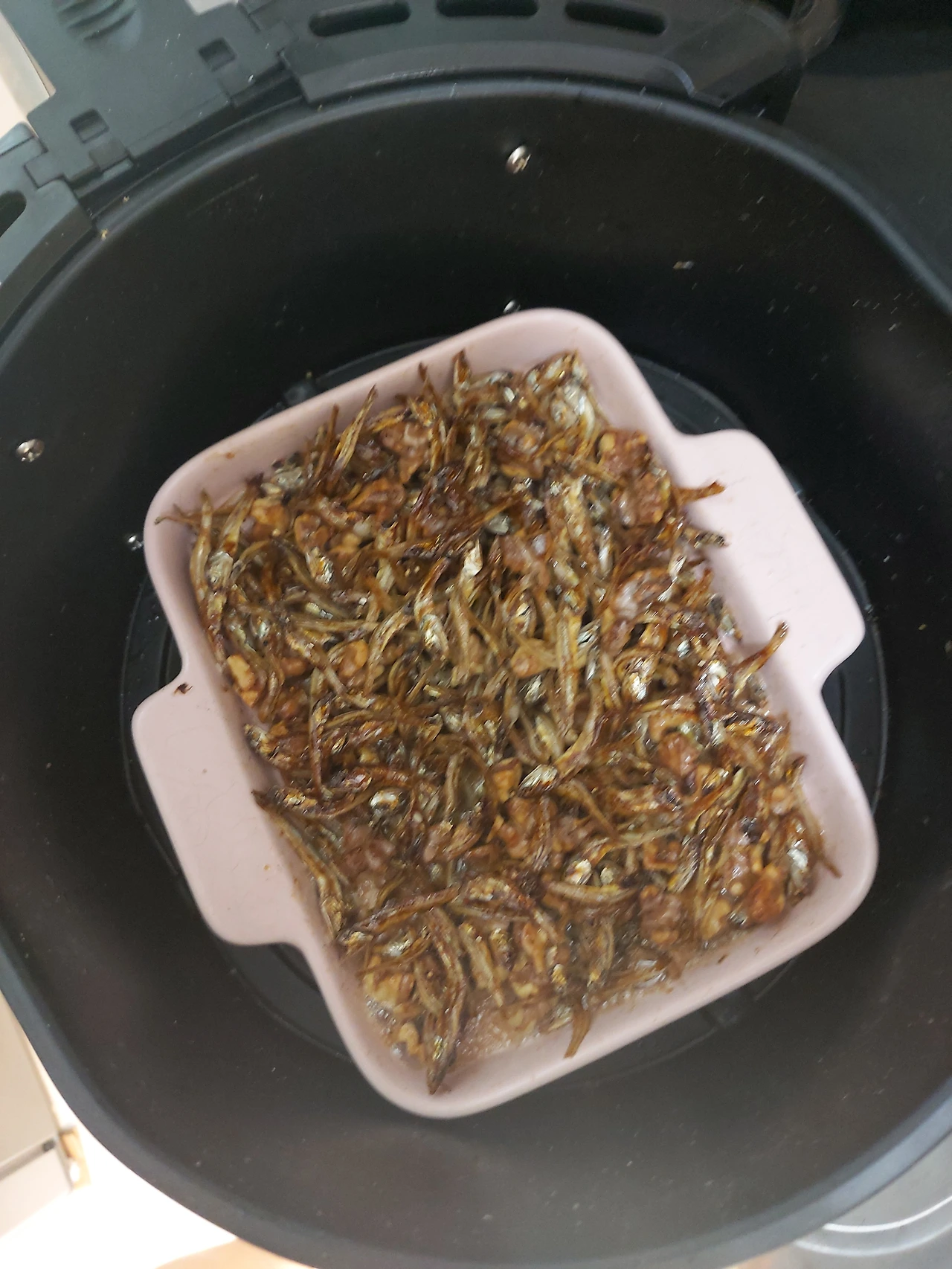 내친 김에 에어프라이어로 어떤 것까지 해볼 수 있는지 시도해보기 시작했다. 냉동야채들와 아보카도 소스를 믹스해 구워보기도 하고 냉장고 안에 있던 호일에 싼 김밥을 데워보기도 했다. 물기를 머금은 식재료들을 그대로 데워야하는 경우에는 수분을 가둘 수만 있으면 충분히 촉촉하게 데울 수 있다는 것도 알았다. 선물로 받았지만 냉장고 속에 박혀있던 멸치의 수분을 날리고 호두도 바삭하게 구워 마른 반찬도 뚝딱.