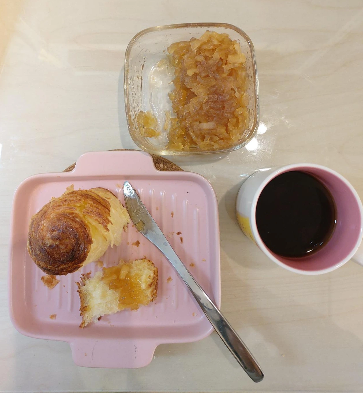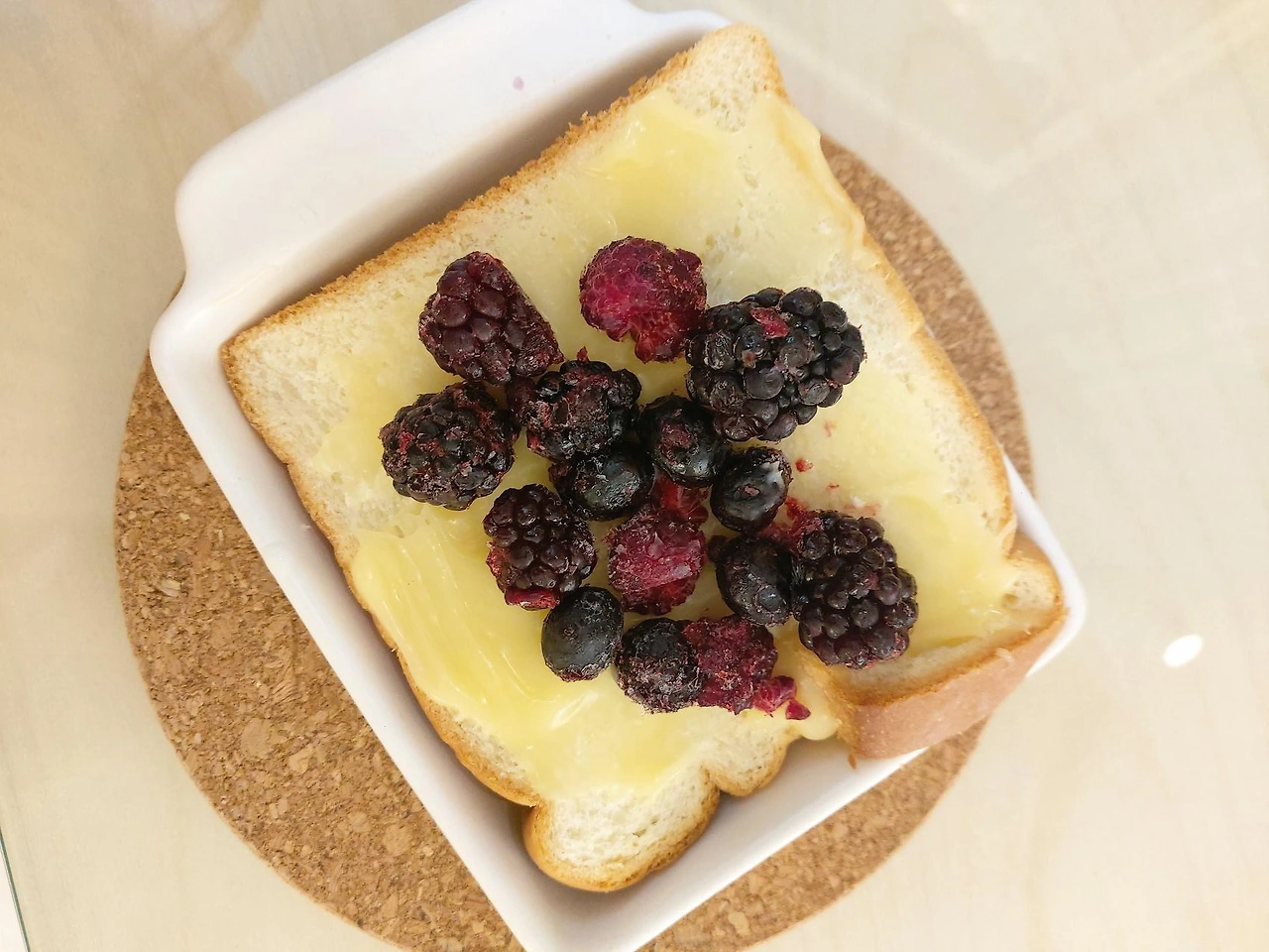 선물받은 빵은 에어프라이어에 구워 집에 있는 사과잼과 커피와 함께. 에어프라이어가 기름기가 있는 음식의 식감을 극대화해준다는 것을 이틀이 지난 빵을 구워보며 새삼 확인하고 이것저것 실험중. 토스트에 연유스프레드, 냉동모듬베리를 올리니 근사한 디저트가 된다는 것을 발견했다. 베리가 졸여져 더욱 달콤하고 새콤해진 맛이 바삭해진 겉면과 촉촉한 연유와 함께 입안에 녹아들었다.