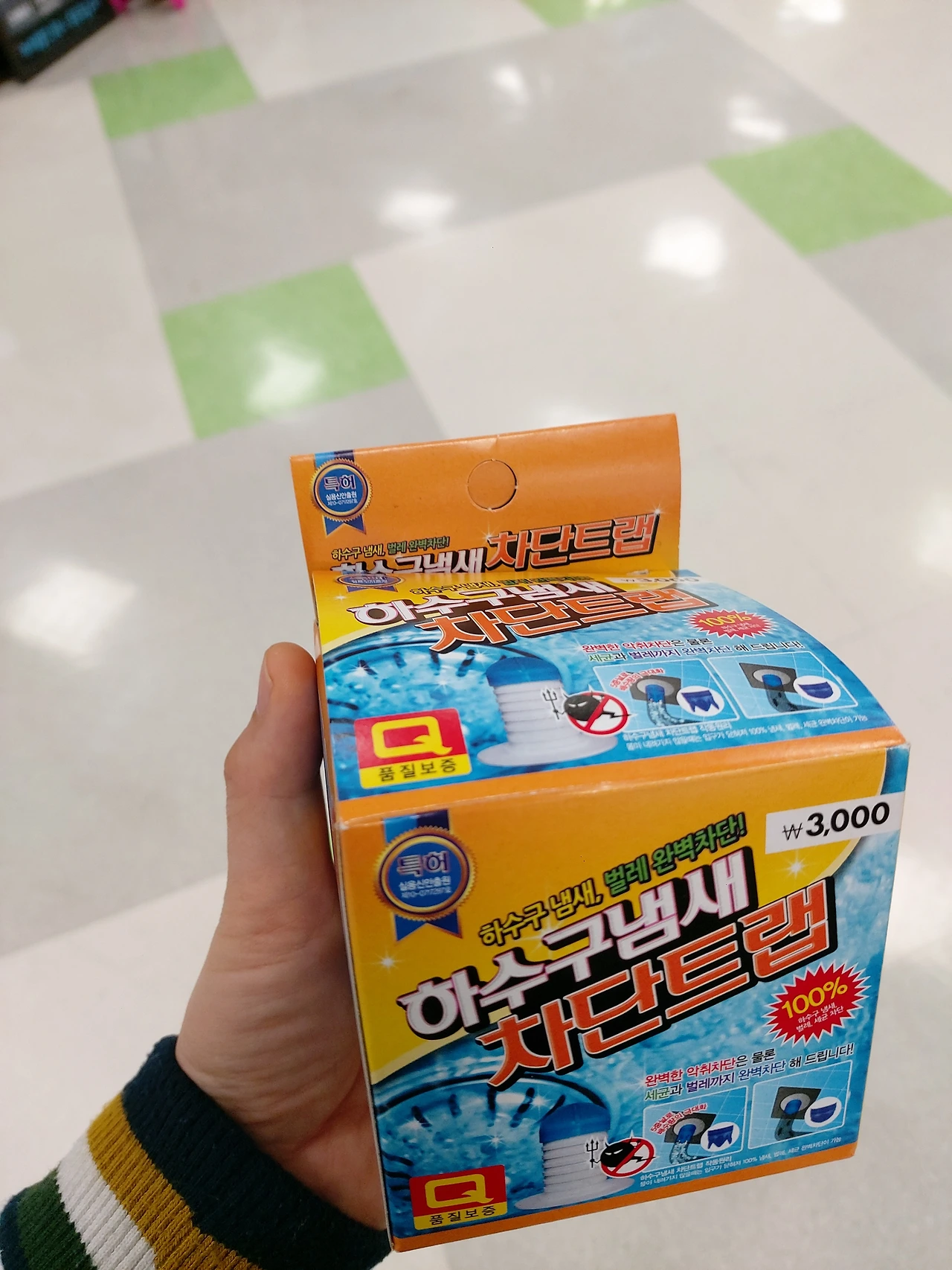 샤워기 앞에는 철망 바스켓을 달아 샤워볼과 비누, 때밀이 장갑을 정리해두고 창틀의 넓은 턱에도 철망 바스켓을 달아 폼클렌징과 샴푸, 린스 등을 정리했다. 변기의 물통에도 철망 바스켓을 달아 바닥에 두고 사용하던 청소용 수세미, 솔, 고무장갑, 유리 닦개 등을 쓰고 쉽게 말릴 수 있게 정리했다. 마지막으로 하수구에서 올라오는 냄새를 막기 위해서 다이소에서 차단 트랩을 사서 하수구에 설치.