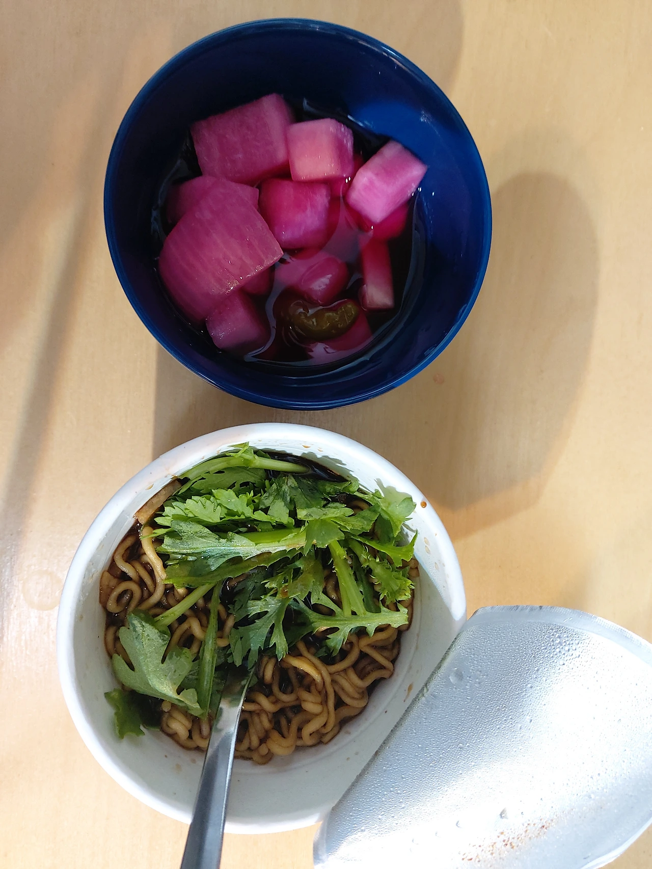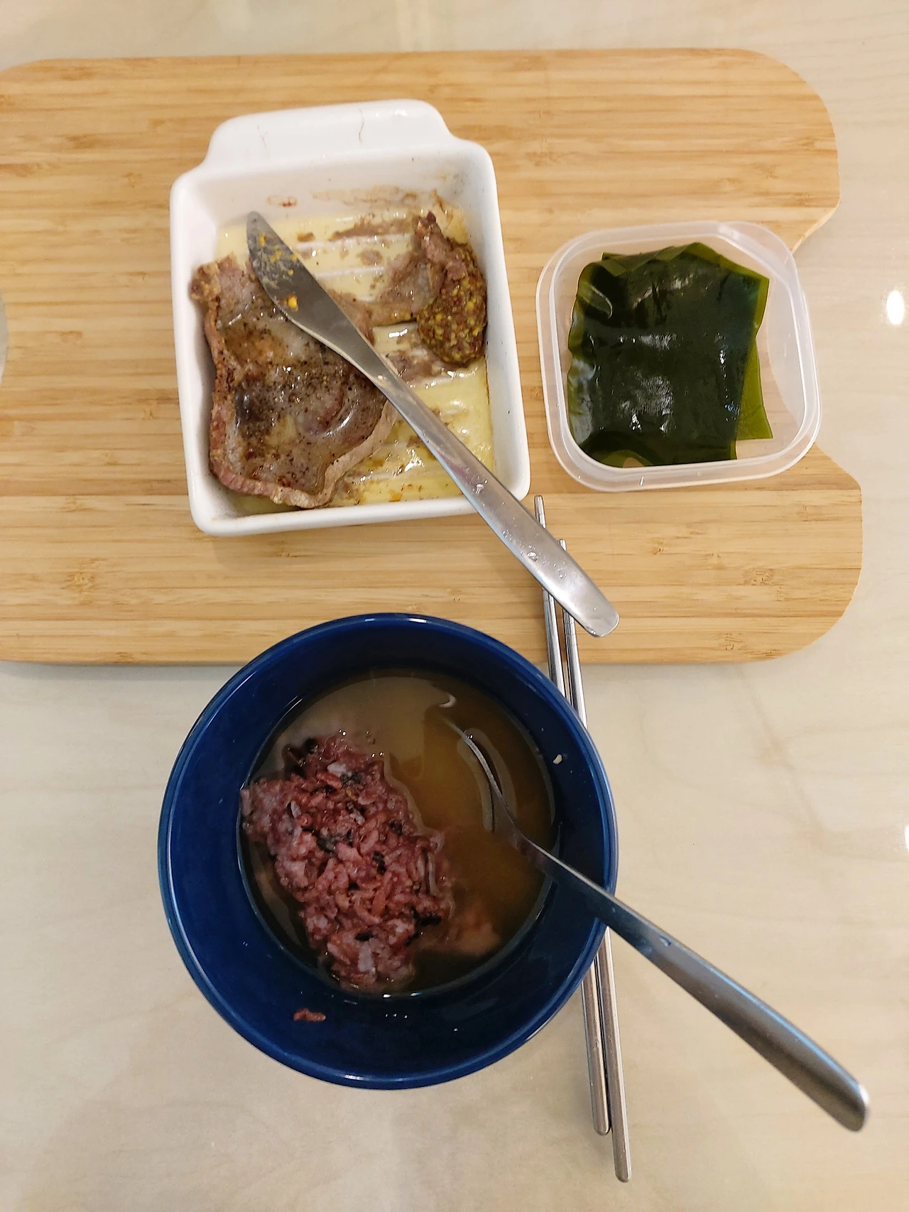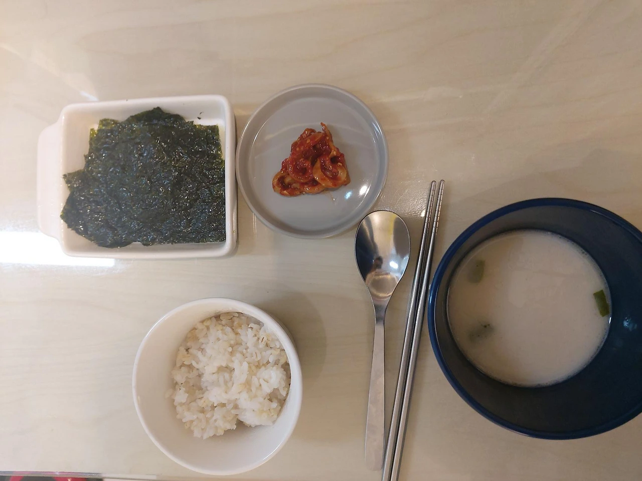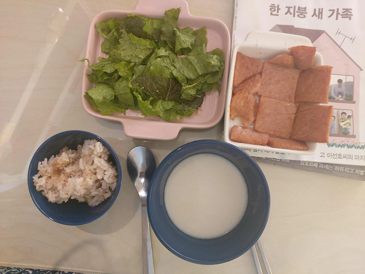 이어서 무피클, 냉동야채, 스팸, 레토르트곰탕, 김, 다시마까지. 가지고 있던 식재료들을 다른 요리에 곁들이기도 하고 새로운 식재료를 더해서 새로운 요리를 만들기도 하면서 냉장고 파먹기와 곰탕국물로 만든 파스타와 같은 새로운 레시피도 시도해보기도.