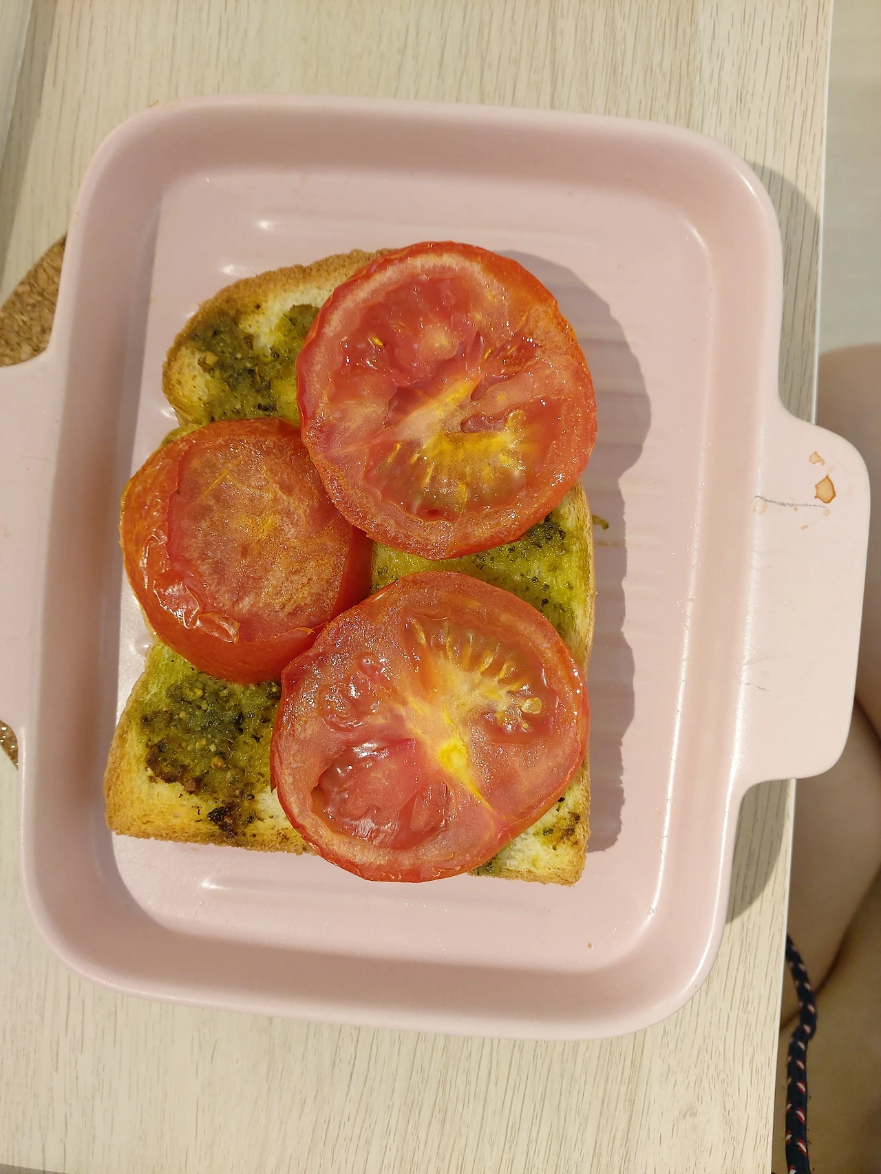 언니가 나누어준 토마토 두 알을 물렁해질 때까지 놔두었다가 에어프라이어에 구워먹었더니 너무나 맛있었다. 토마토는 익혀먹는 게 맛을 배가시킨다는 이야기를 많이 들었지만 역시나 그렇다는 걸 새삼 확인했다. 나도 모르게 바질페스토를 더해, 버터를 올려, 모짜렐라 치즈와 함께 자꾸만 구워먹고 있었다.