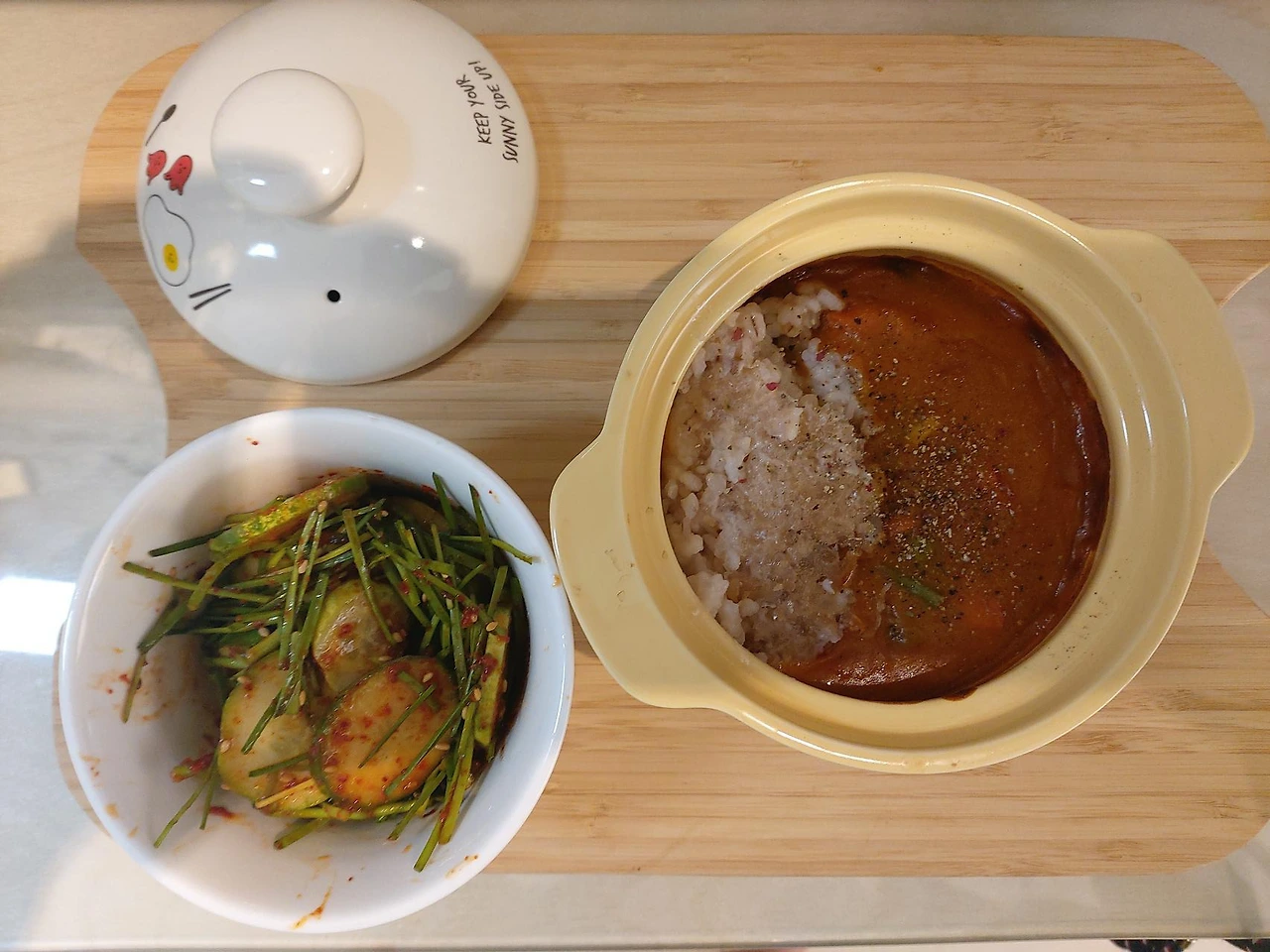 그래도 하루에 적어도 한끼 이상은 직접 만들어 먹는 습관을 기르려 노력중이다. 이왕이면 간단한 조리법으로 빠르고 손쉽게 요리를 하는 편을 택하고 일요일 저녁에는 일주일치 점심 도시락을 미리 싸둔다. 밥을 할 때에는 두 끼정도의 분량을 해두고 다음날 저녁에 돌아왔을 때 간단한 메인요리와 함께 따뜻한 밥을 먹을 수 있게 준비해두려 한다. 배가 고픈데 새로 밥을 해야한다면 기다리는 대신 면과 같은 좀 더 빠르고 손쉬운 요리를 택하는 등 따뜻한 밥상을 차리고 즐겁게 식사를 하는 순간을 놓치지 않으려 한다. 냉장고문을 열고 찬장문을 열며 어떤 요리를 할까 생각해보고 레시피를 확인하며 재료를 준비하고 양념을 만들다보면 다시금 만드는 즐거움을 느끼고 음식이 완성되고 음미하다보면 나를 위한 수고로움이 뿌듯해진다. 아무리 바쁘고 힘들더라도 여유롭게 맛을 즐기는 순간을 포기하고 싶지 않다. 그 자체가 큰 기쁨이기에.