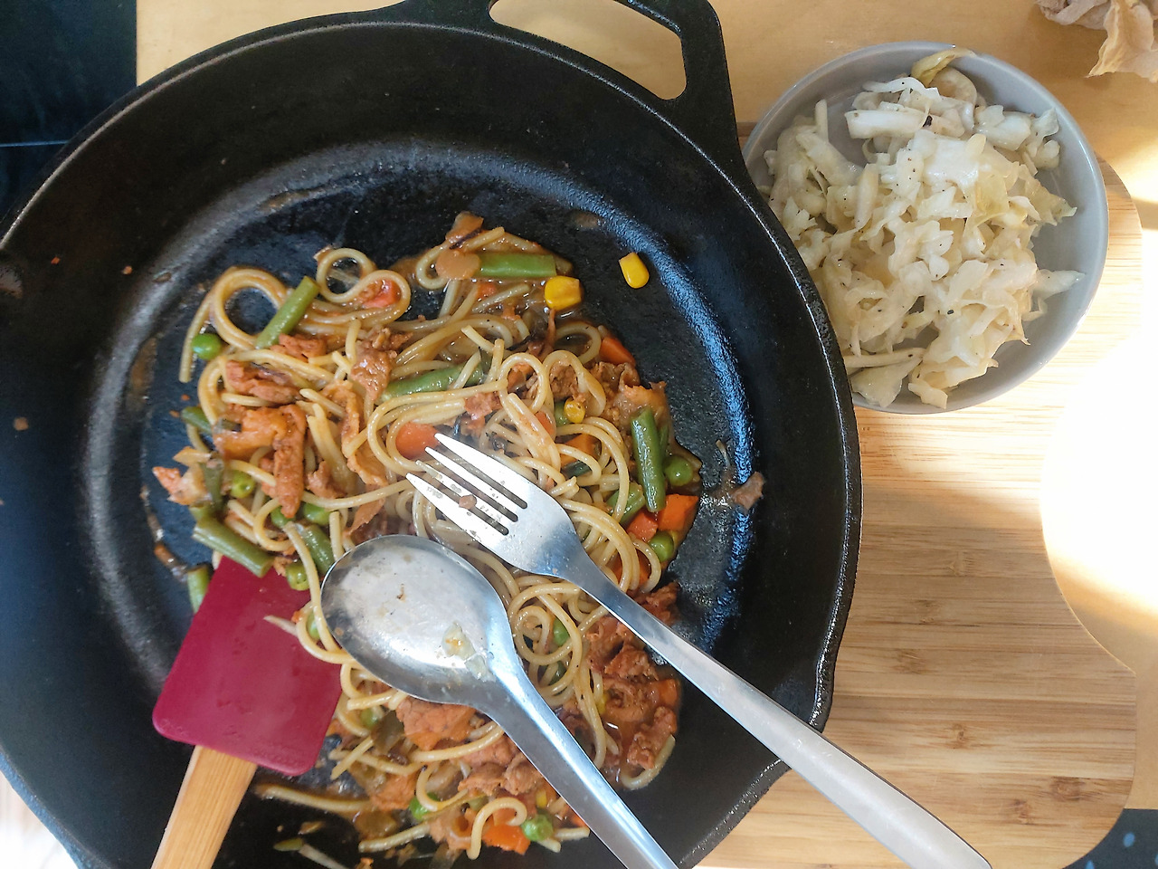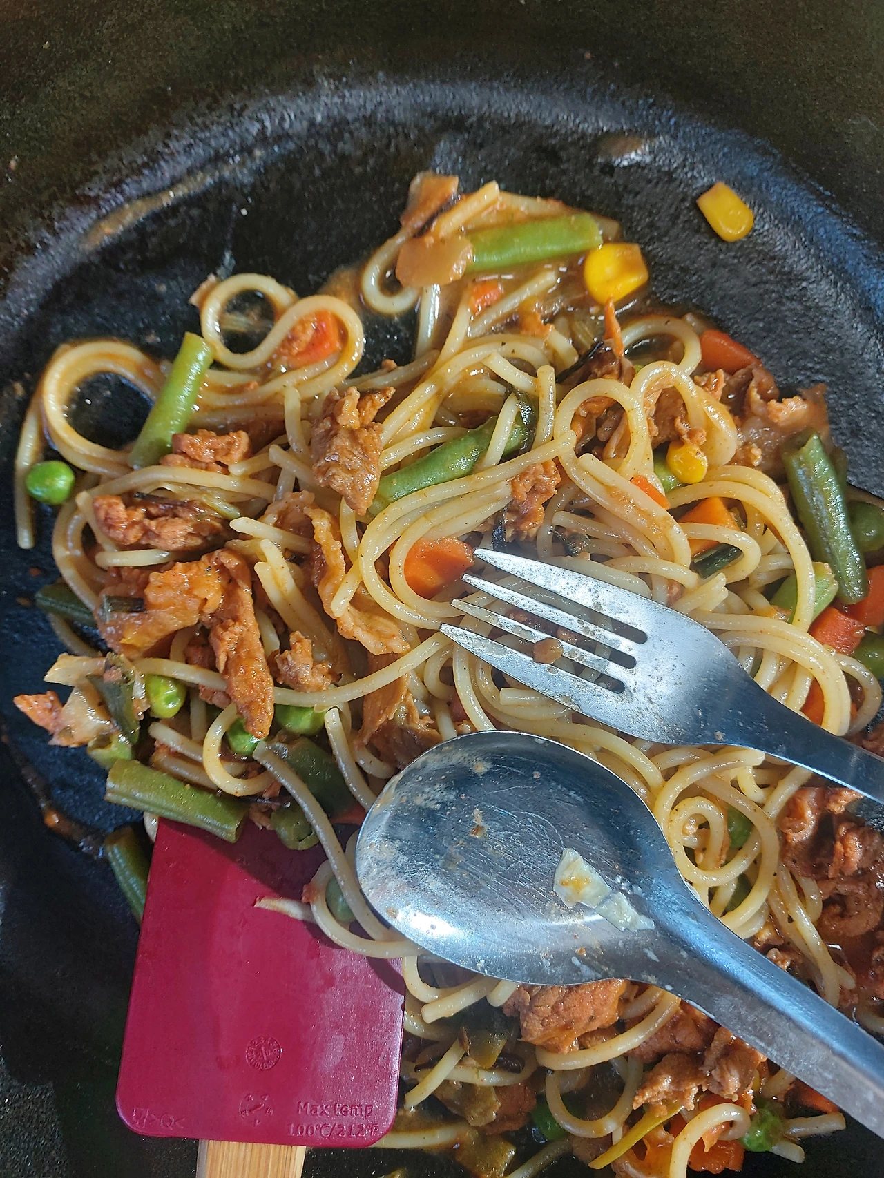 냉동야채는 생야채보다 오래 보관할 수 있으며 가성비좋은 요리재료. 파스타 샐러드에도, 마파두부에도, 짜장소스로 만든 퓨전식 파스타에도 잘 어울린다.