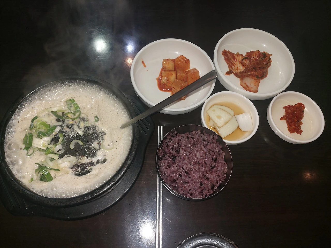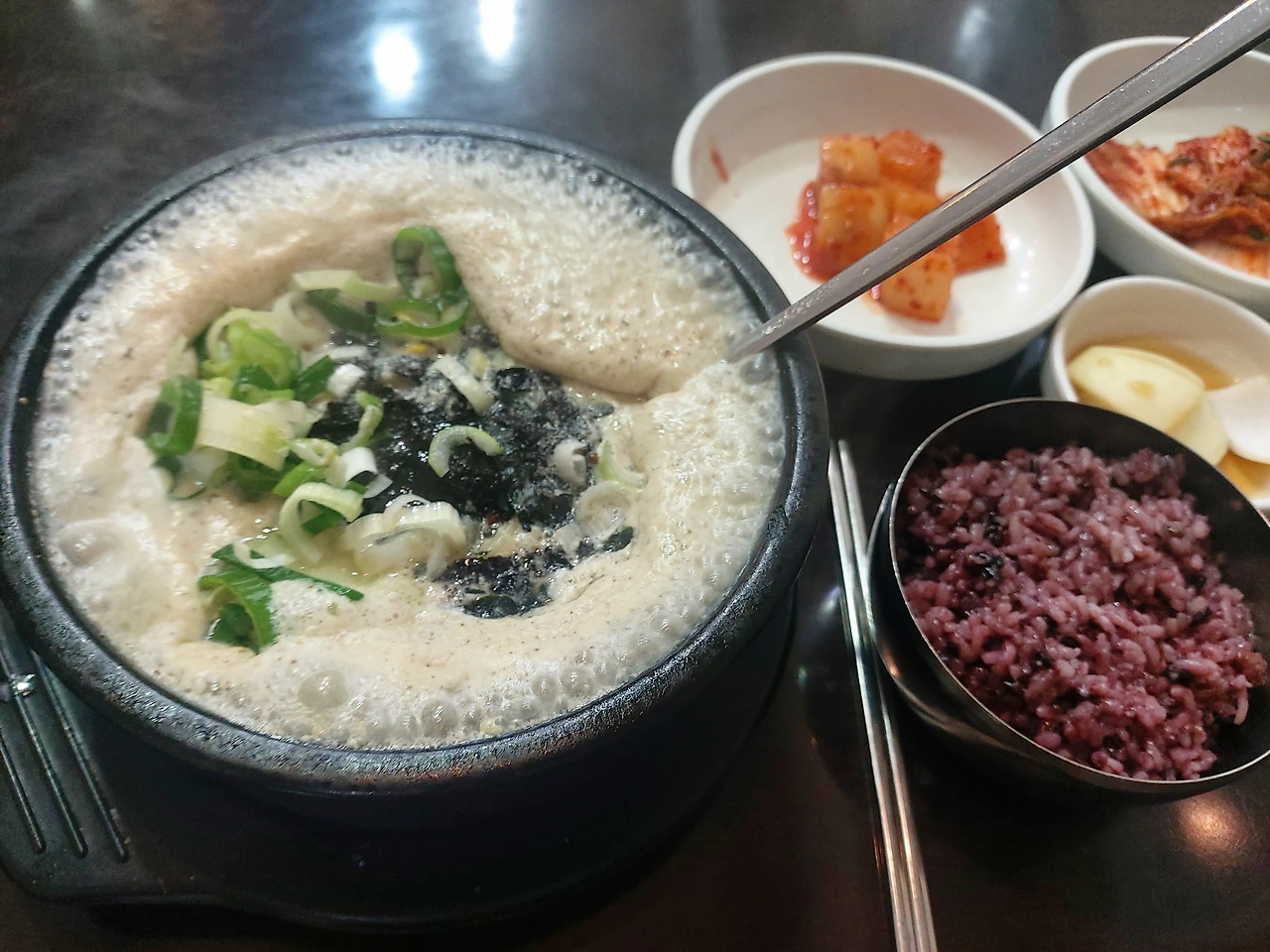 들깨를 듬뿍 넣은 콩나물해장국. 코로나19백신을 맞으러 가는 길에 빈속을 든든히 달래고 씩씩하게.