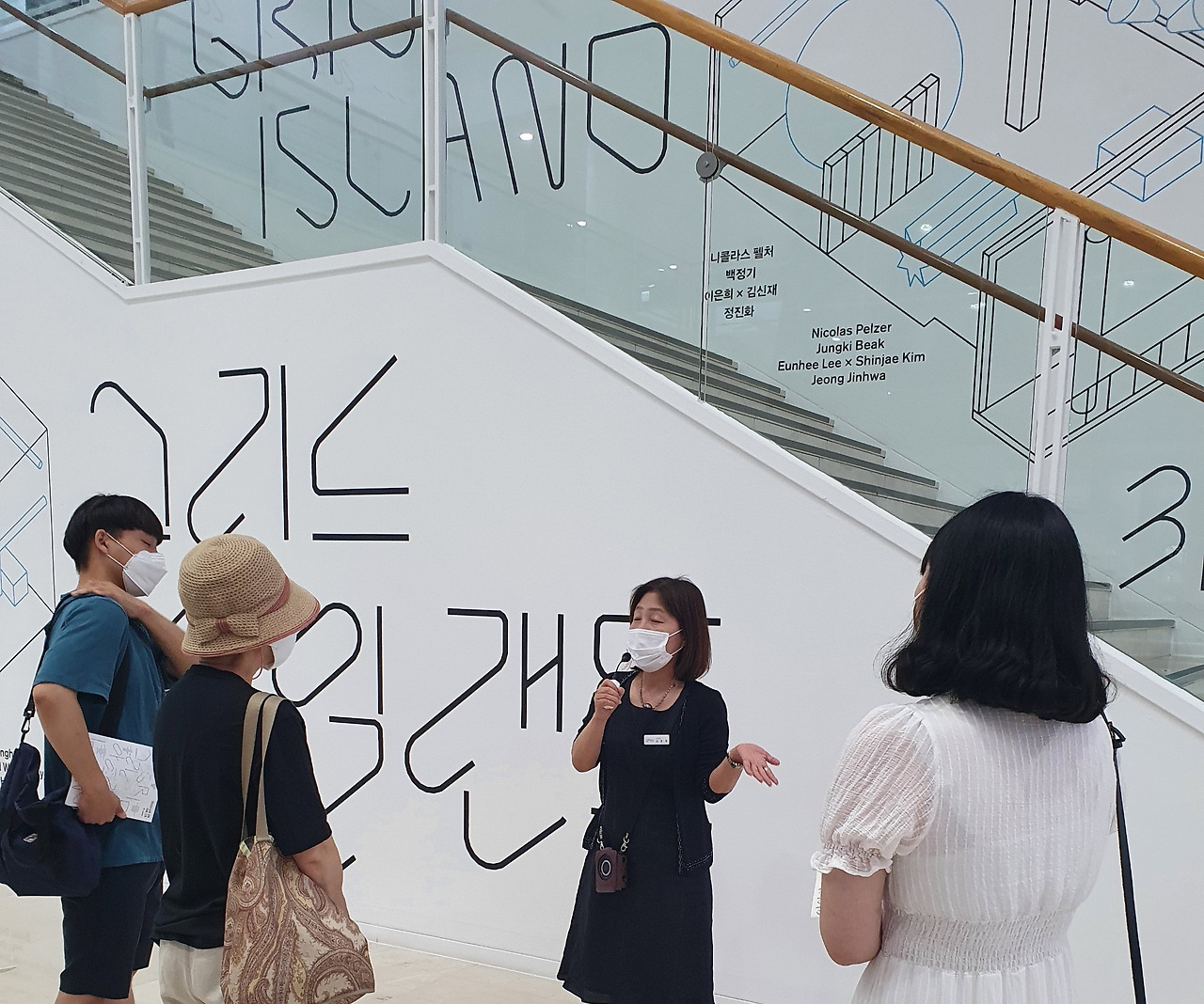 어떤 사람들은 미술관에서도 긴장하게 만드는 것 같아요. 나도 다른 미술관이나 박물관 같은 데나 궁궐 같은 곳에서도 사람들 설명을 듣는 사람이라 여러 해설을 듣다 보면 사람마다 다 개성이 있고 다 다른데요. 좀-. 지식을 너무나 많이 이야기하는 사람들 설명을 들으면, 느낌이 없는 설명을 들으면, 피곤해요. 그리고 ‘아, 내가 여기에 즐기러 왔지, 공부하러 왔나.’ 생각하게 돼요. 그래서 나는 그런 주의로 해설을 하는 편이에요. 내가 일단 편하고 내가 즐거워야 듣는 사람도 똑같은 걸 느낀다고 생각을 해요.