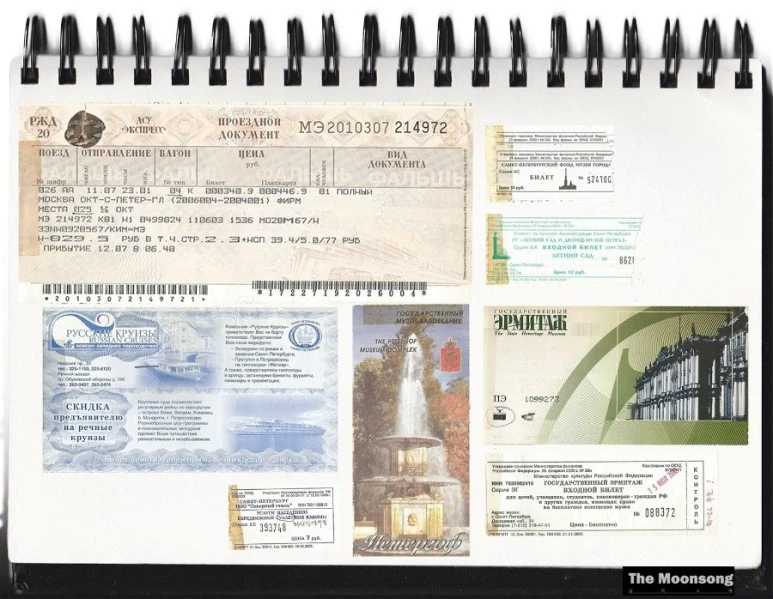 상트에서 모았던 티켓들은 이미 너무 오래되어 붙여두었던 테잎의 색깔이 누렇게 변해있었다. 여행 전에 얼치기로 익혔던 끼릴문자도 기억에 거의 남아있질 않아 더듬거리며 읽어내려간다. 그래도 낯선 글자와 낯선 풍경들이 툭툭 흐린 기억을 뚫고 나온다. 상트에서 스케치하지 않았던 순간들이 떠오른다.