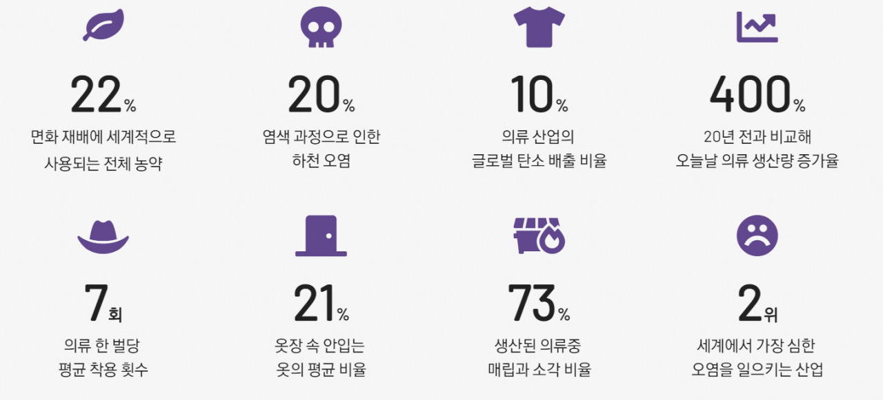 '평균적으로 여성은 한 번도 입지 않을 옷을 구매하는데 550달러를 소비한다. ' 소비의 천국, 미국의 기준 아니고? '매년 세계에서 소비되는 의류는 800억 벌이고 버려진 의류 가운데 95%는 리사이클링과 업사이클링이 가능하다.' 음, 정말이라면 심각하긴 하네, 그래도 나는 옷을 일 년에 한 두벌 살 뿐이고 옷도 대부분 10년 이상 입는데? '80퍼센트가 자기 소유 옷 가운데 20퍼센트만 입는다.' 흠. 20퍼센트? 그럼 80퍼센트를 안 입는다고? 설마, 사실일까? 한국 자료도 있을 것 같아서 찾아보았다. 있다. 그것도 최근의 자료가.