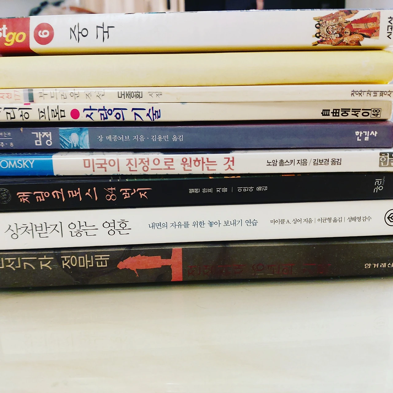 무엇보다 내가 가장 집착하고 또 정리하기 어려워하는 것은 역시나 책과 서류파일, 노트와 아이디어메모들이었다. 분야별로 정리해 둔 책장과 지금까지 공부했던 내용들, 일하며 모아둔 자료들은 제각기 그 나름대로 모아둔 까닭이 있었기에 책장에 테트리스하듯이 채우고 또 쌓아두고도 그것들을 정리할 생각은 한 번도 하지 않았다는 것을 깨달았다. 몇 번이고 스스로에게 질문들 - 미니멀리스트들의 책에서 참고한 정리가이드가 되는 질문들- 세월과 추억이 담긴 책들과 자료들에서 더는 필요하지 않은 것들을 골라냈다. 그래도 다시 볼 기회가 있지 않을까, 여전히 도움이 되는 것들이 있지 않을까, 속삭이며 나를 붙잡는 망설임을 뒤로하고 오랫동안 읽지 않은 것, 분명히 더는 펼쳐보지 않을 것, 참고용 혹은 정보나열이나 소개용 책들이라 최신판을 보아야 하는 것들, 선물 받았고 읽었지만 좋아하지는 않는 것들. 하나씩 정리해나가다 보니 망설여지는 것들이 있었다. 결국 15권을 기부하는 것으로 마무리하며 시간을 두고 정리해 나갈 수밖에 없음을 알았다.