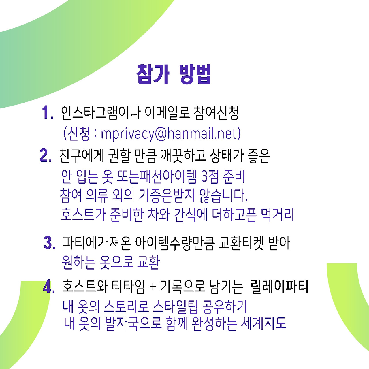 1️⃣ 참가신청하기 (insta or mprivacy@hanmail.net로)