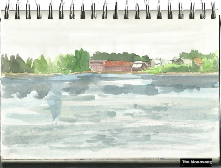 스케치를 하던 종이 위에 그대로 그려버린 앙가라강 저편. 스케치북 종이질이 좋지 않아서 지우지 못하고 남긴 연필자국. 자국을 더듬으며 그림을 그리던 그때를 더듬는다. 하염없이 하얗게 반사되는 수면을 바라보며 시간을 보내고 또 보냈었다. 나는 무얼 바라고 여기까지 왔는가. 여행이 끝나면 무엇을 해야할까. 어떻게 살고 싶은가. 마음 속 깊은 곳에서 차마 꺼내보지 못했던 질문들이 하나씩 고개를 들어 어지럽게 뒤엉켜도 수면은 한없이 잔잔했었다.