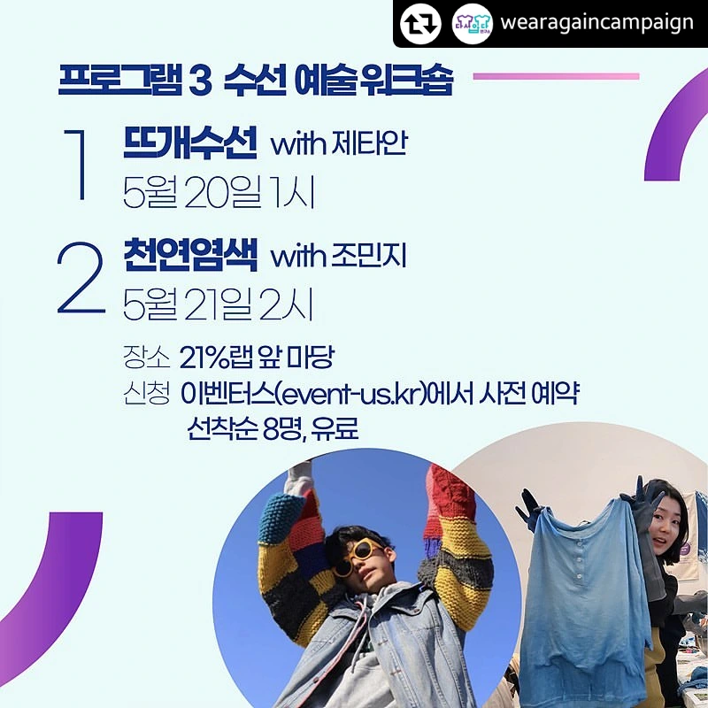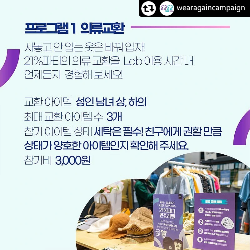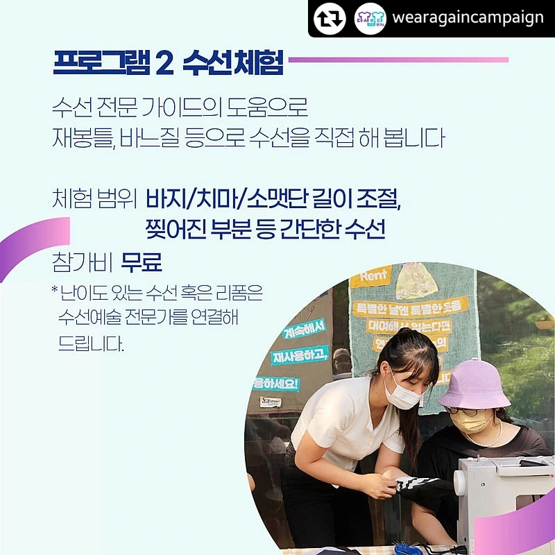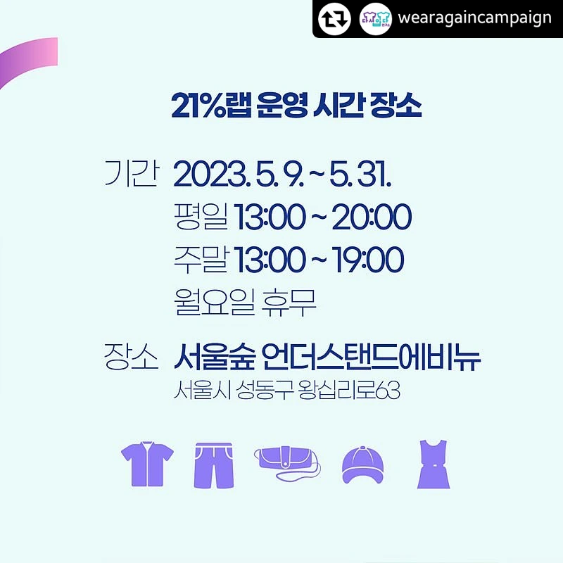 혹 이 글을 읽고 동참하고 싶은 분들이 있다면 주저 말고 참여해 보시길. 의류교환과 의류수선은 5월 말까지 서울숲 언더스탠드애비뉴에서 매일 가능하다.